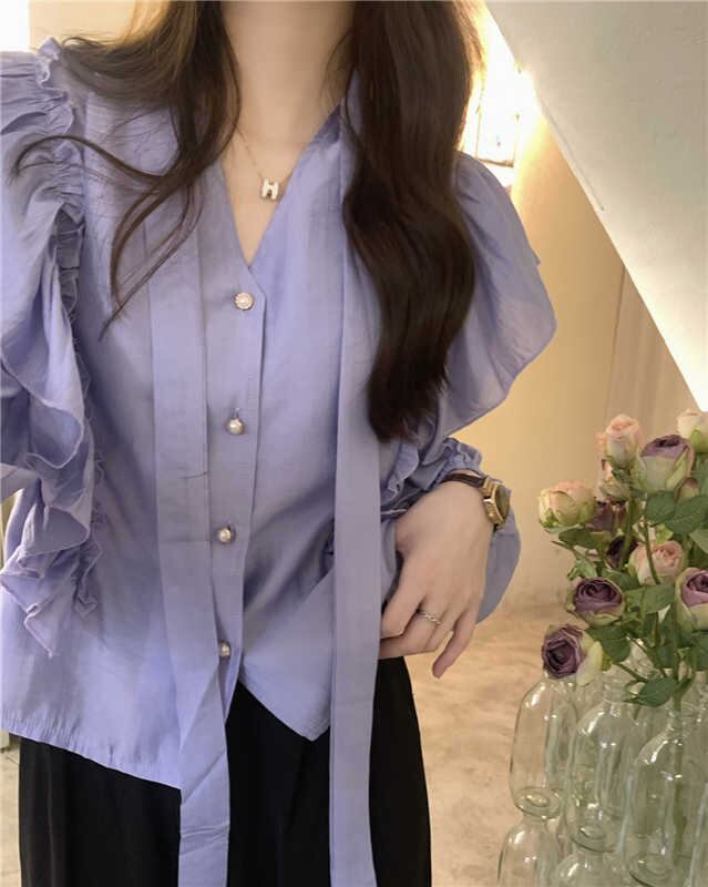 2023秋INS新作★カジュアル フランス風 気質 デザイン性 フリル 着心地抜群 長袖 シャツ