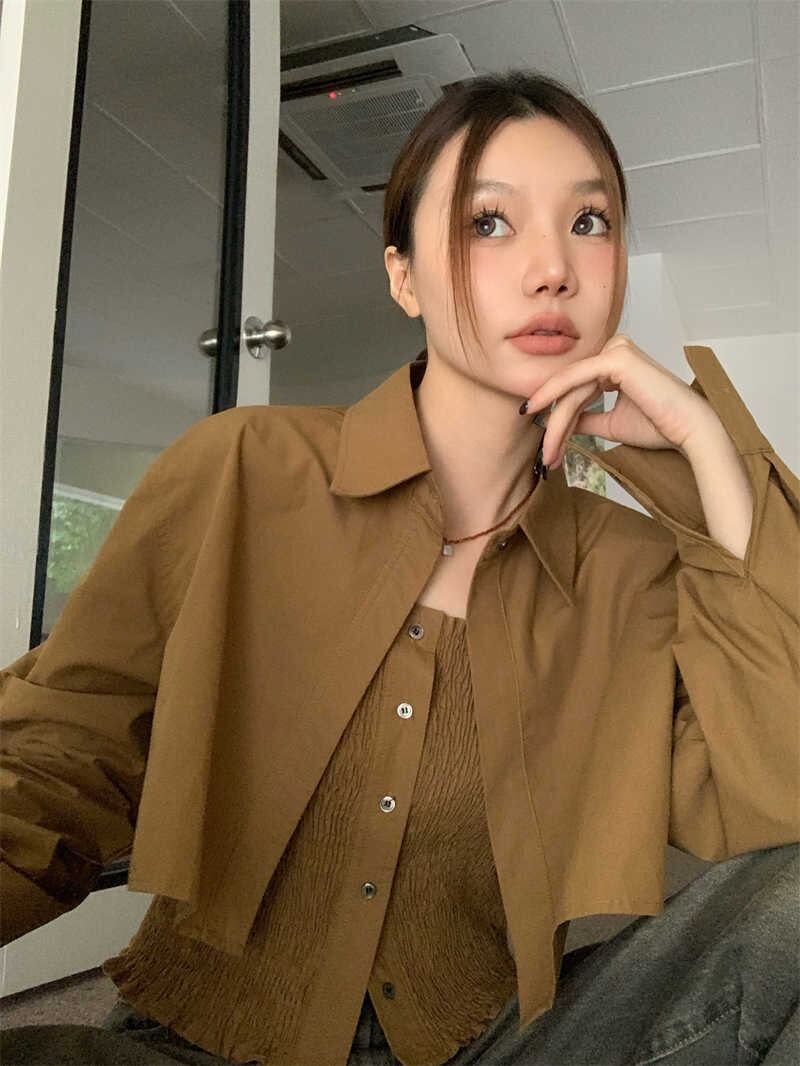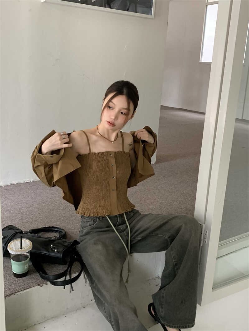 2023秋INS新作★カジュアル 韓国風 気質 レトロ ゆったり 着心地抜群 キャミソール+シャツ
