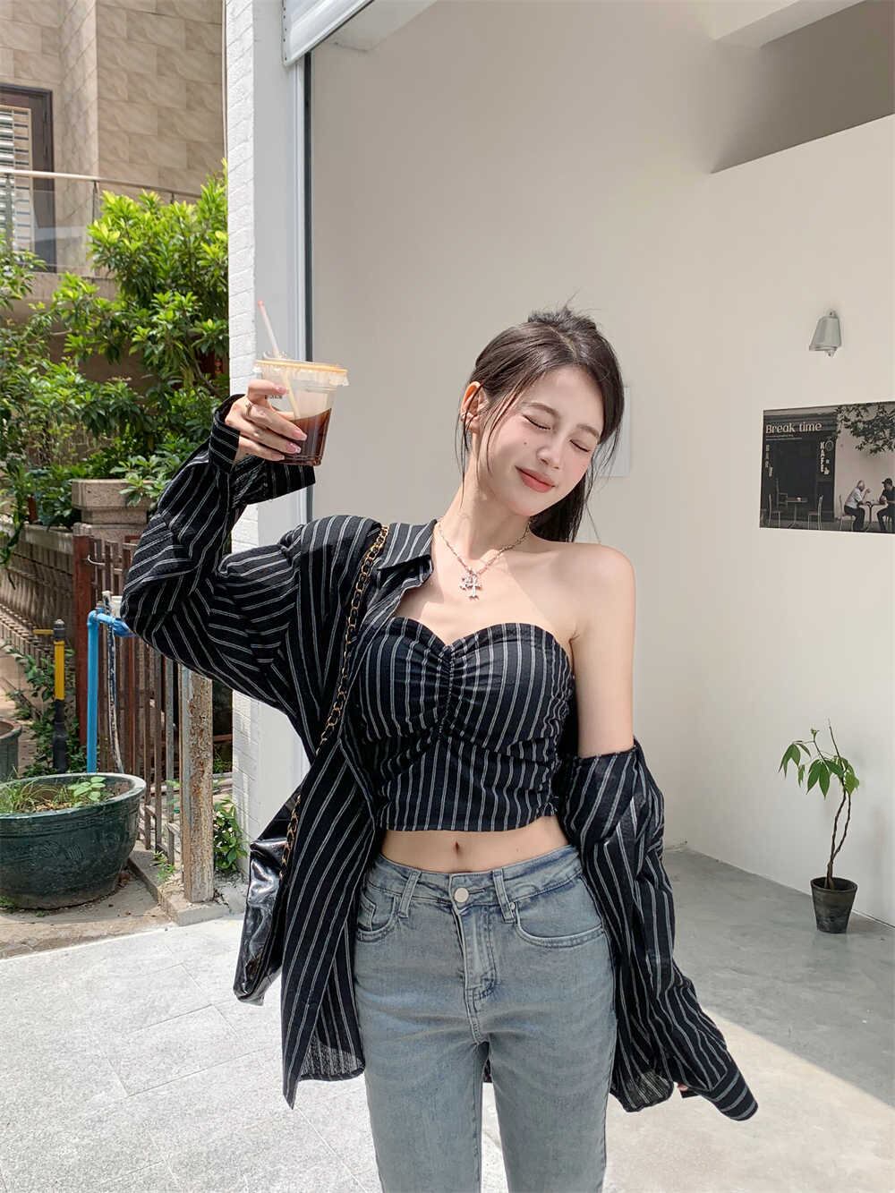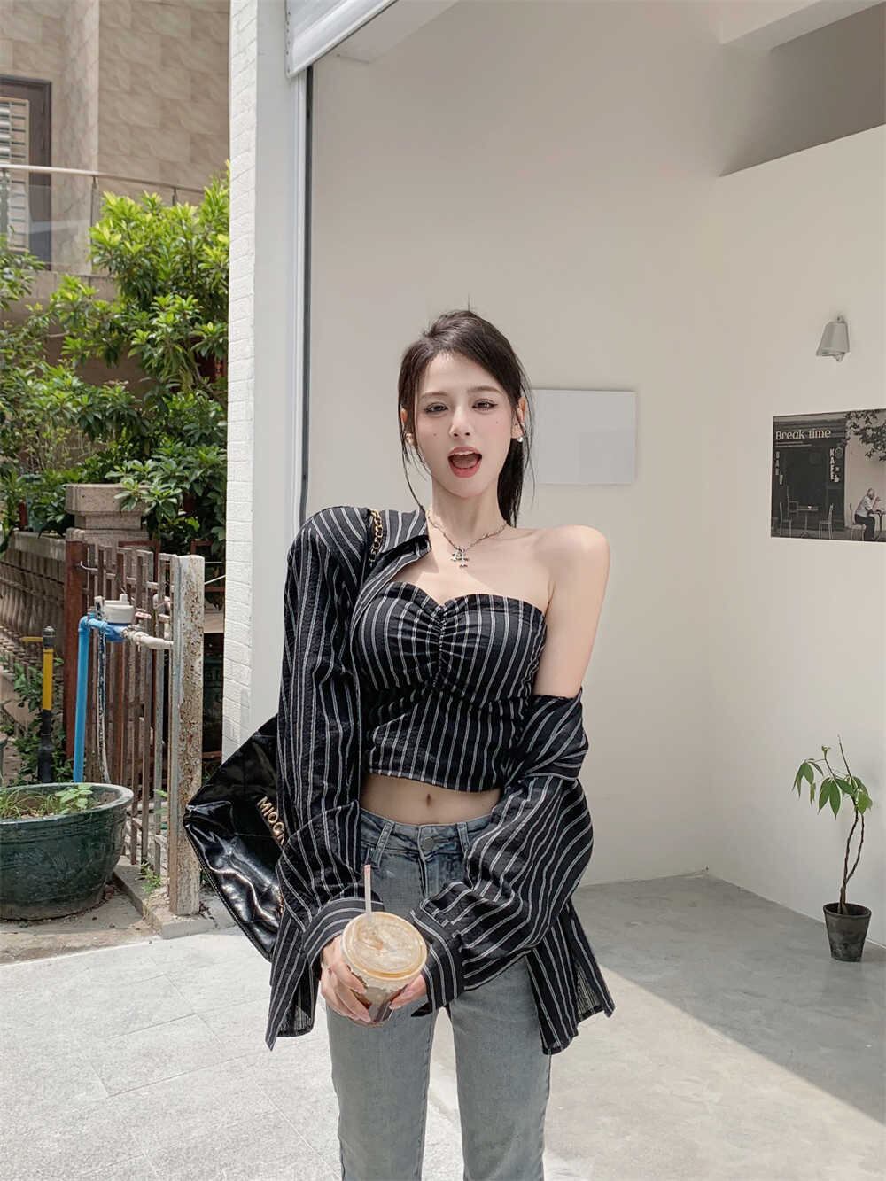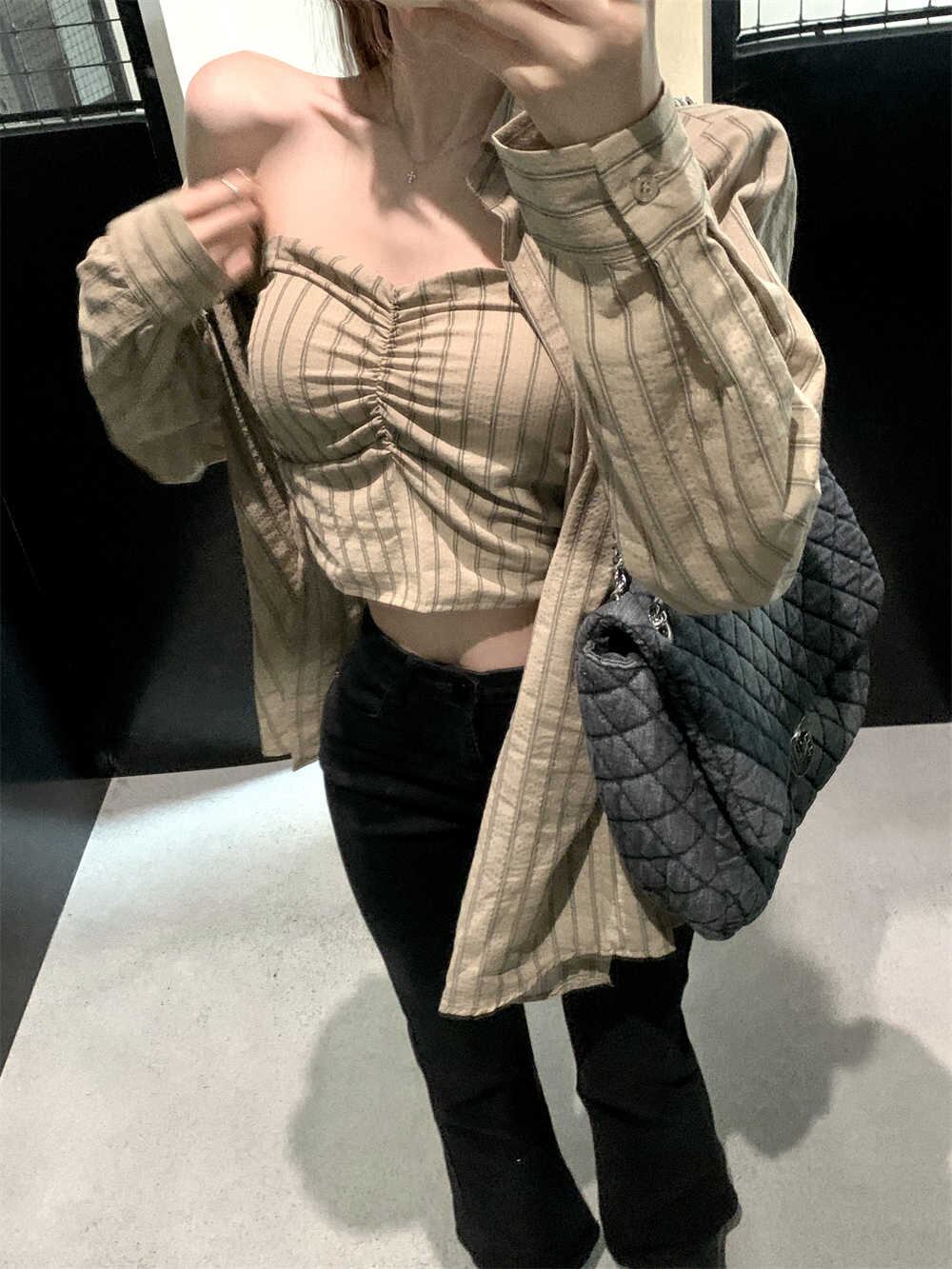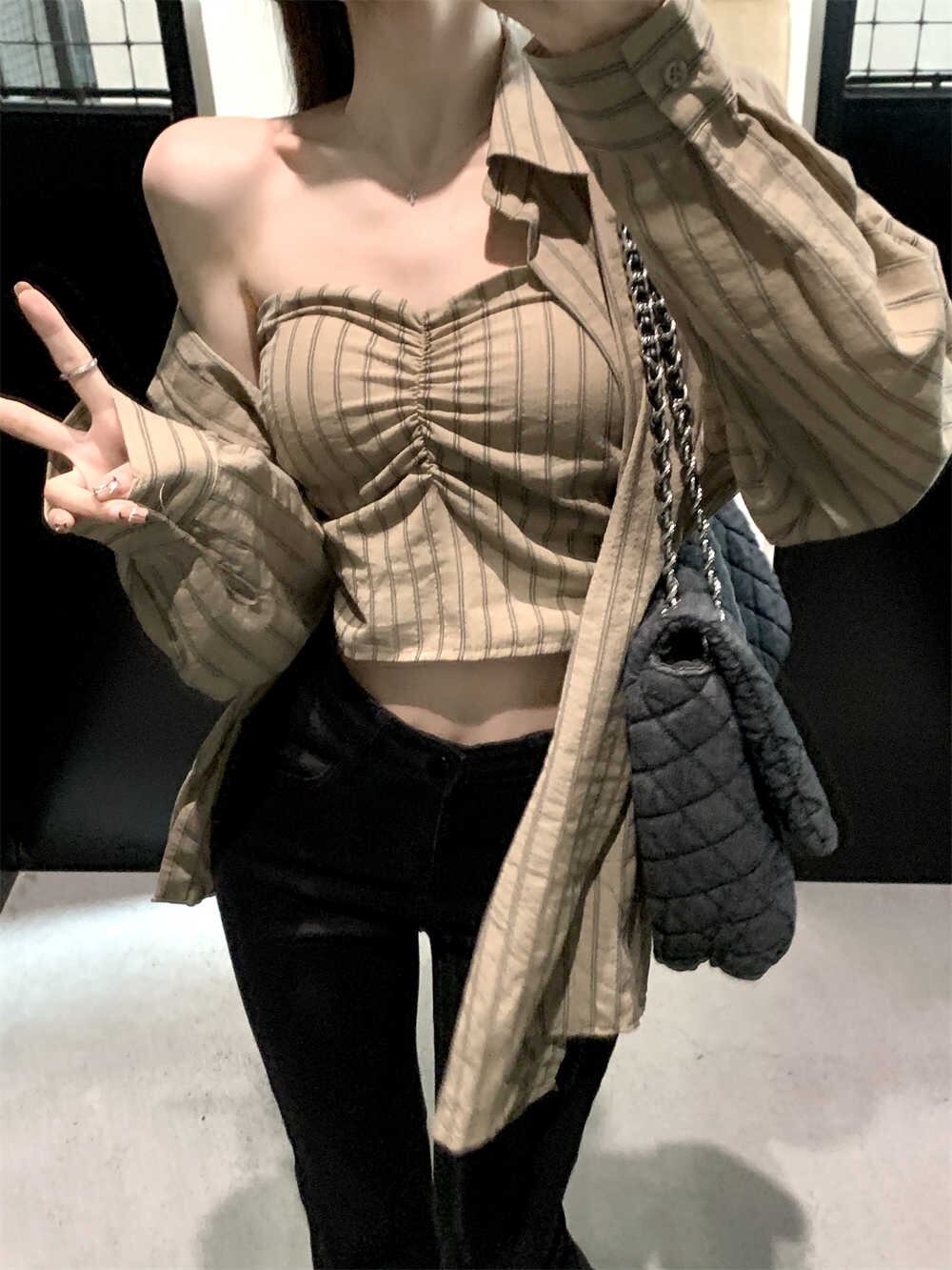 2023秋INS新作★カジュアル 韓国風 気質 レトロ ゆったり 着心地抜群 シャツ+チューブトップ