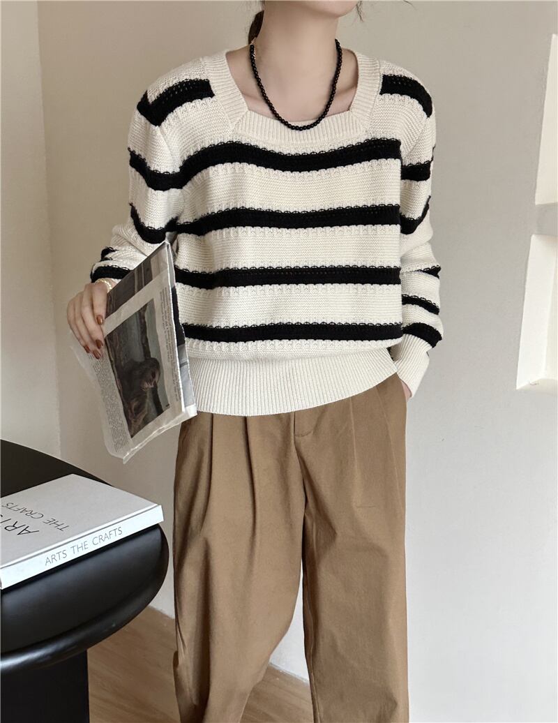 2023秋INS新作★韓国風 気質 ファッション ストライプ柄 ニット セーター