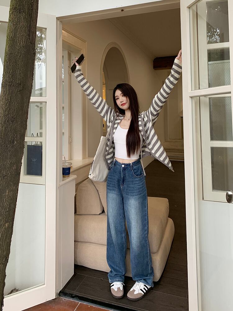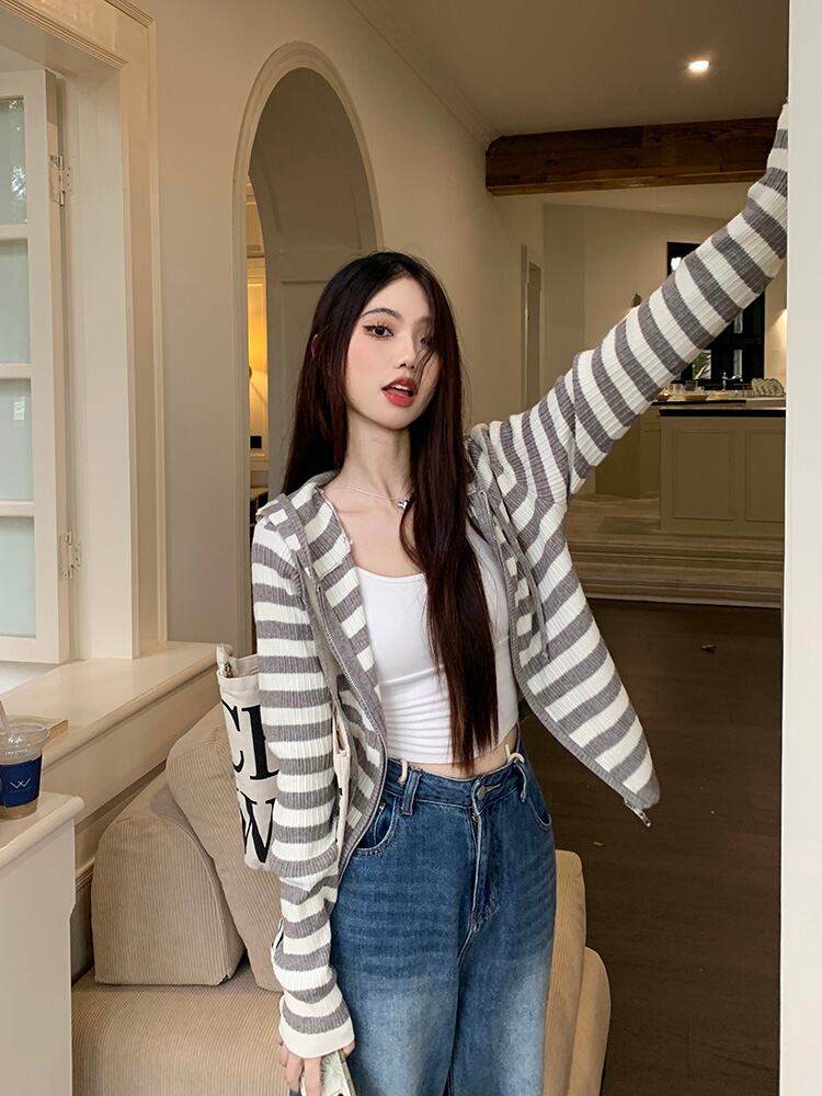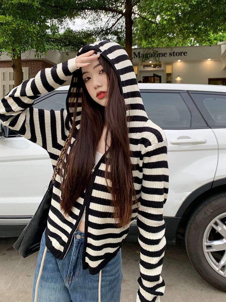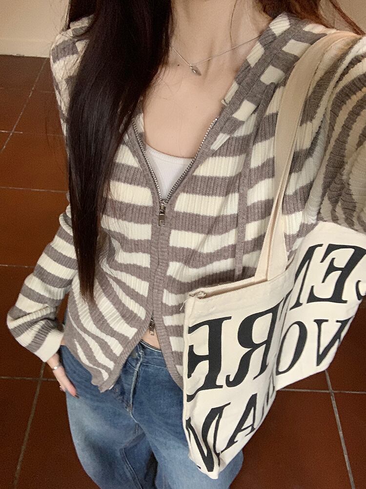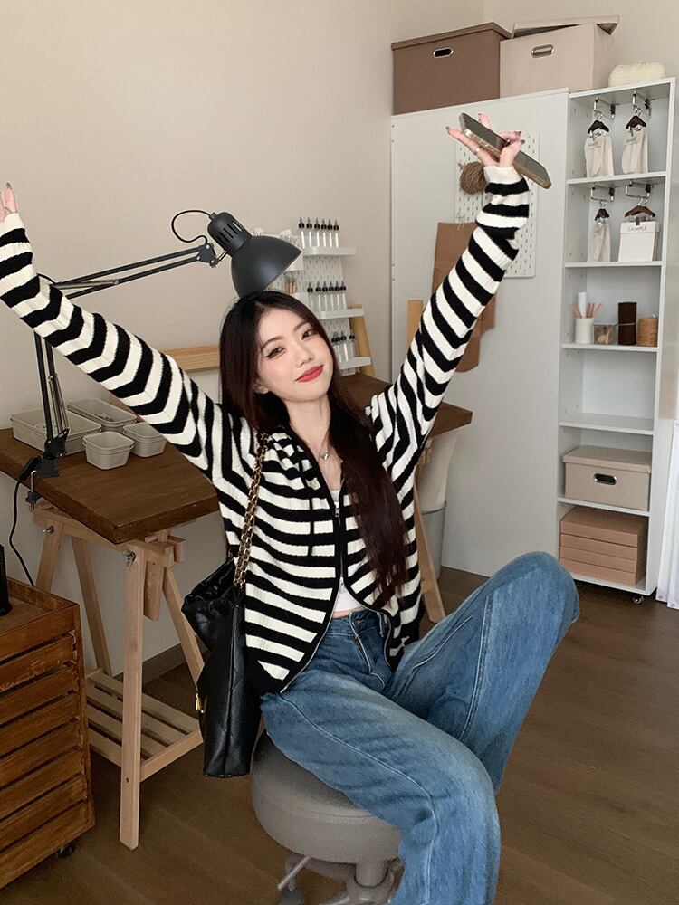 2023秋INS新作★カジュアル 韓国風 ストライプ柄 気質 デザイン性 着心地抜群 カーディガン