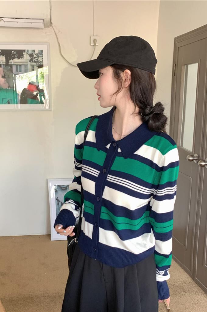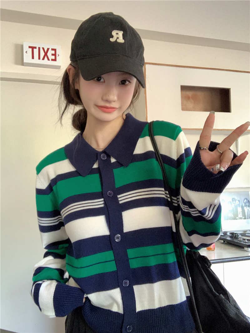 2023秋INS新作★カジュアル 韓国風 気質 デザイン性 ストライプ柄 着心地抜群 ガーディガン