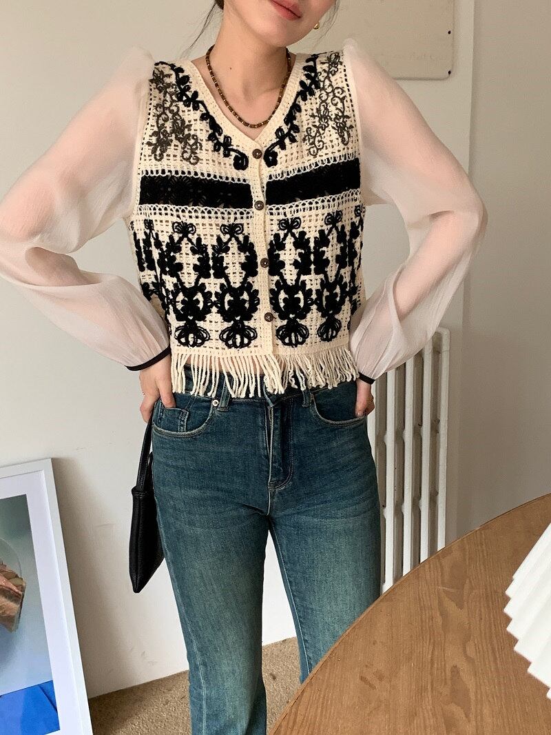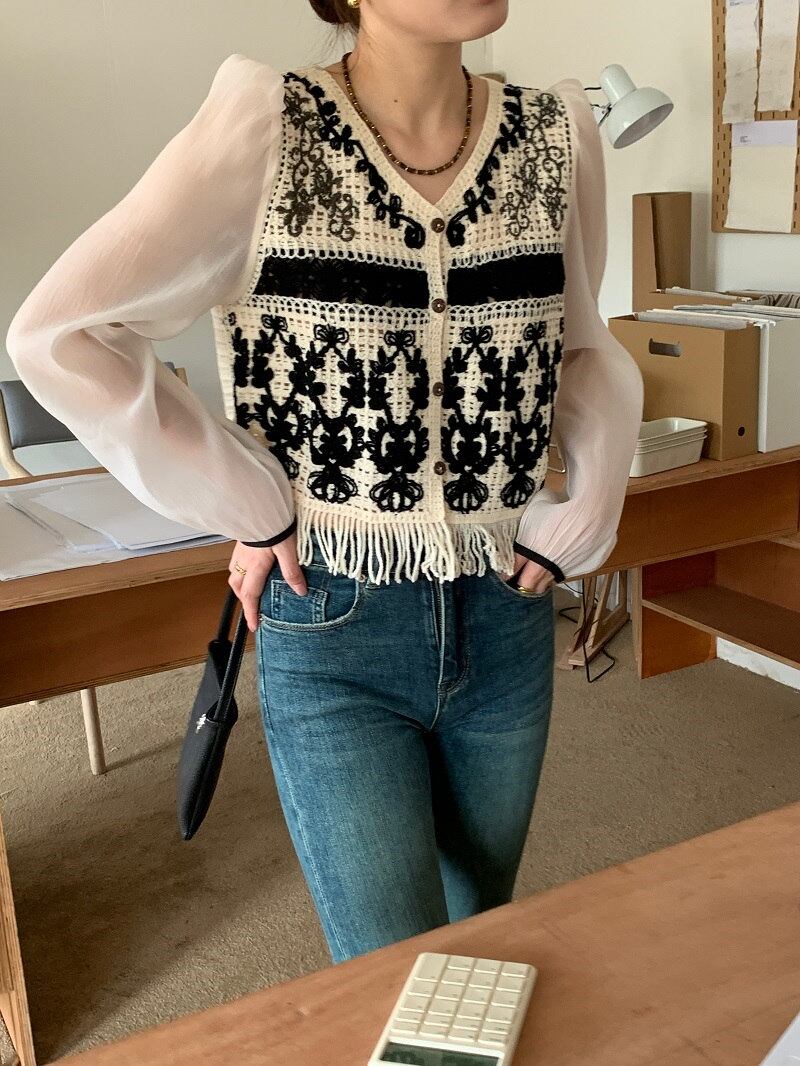 2023夏INS新作★韓国風 気質 シンプル 長袖 刺繍 切り替え シャツ/ブラウス