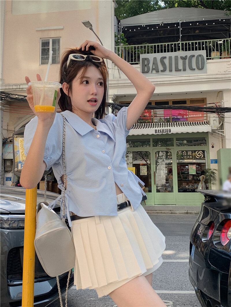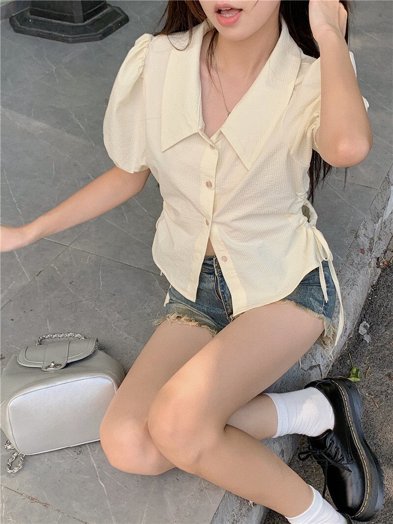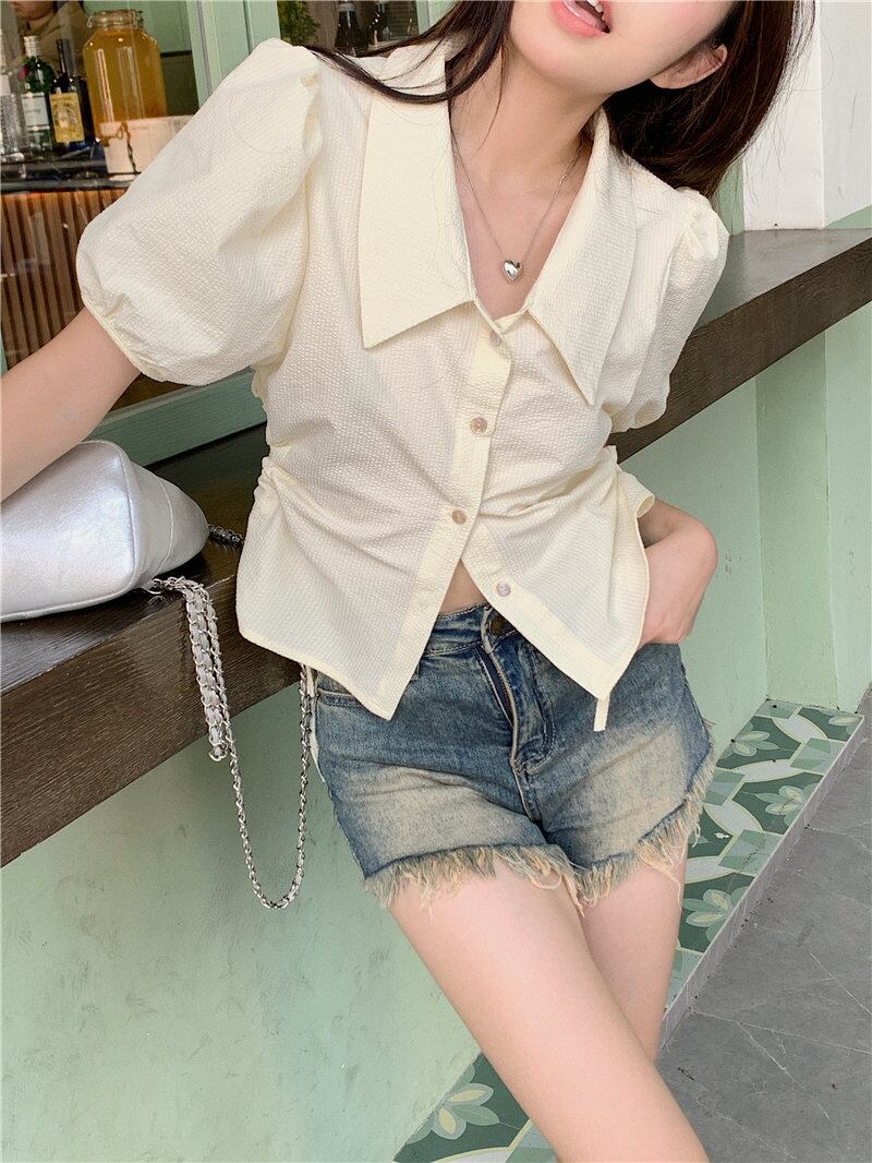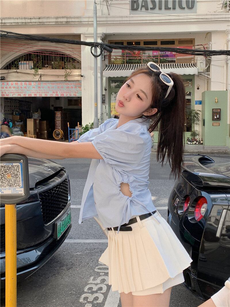 2023夏INS新作★韓国風 気質 シンプル 韓国風 透かし彫り シャツ/ブラウス