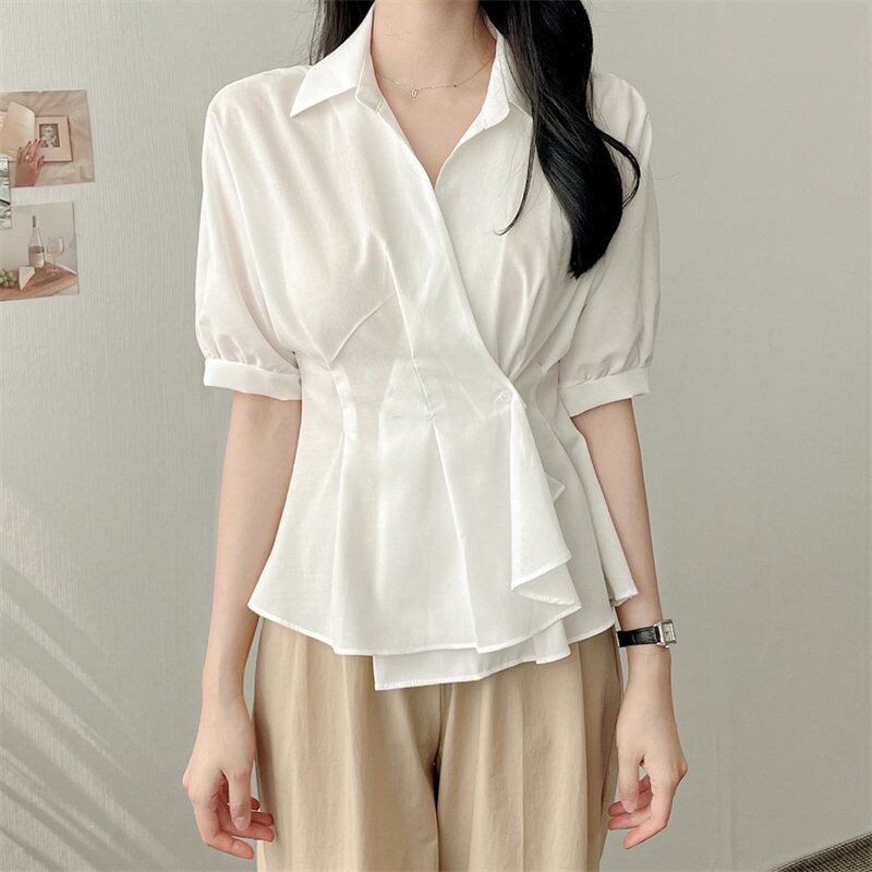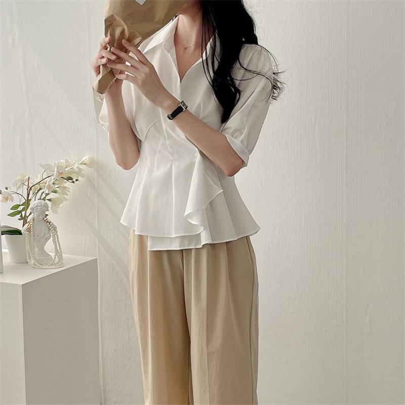 2023夏INS新作★韓国風 気質 シンプル 韓国風 フリル シャツ/ブラウス