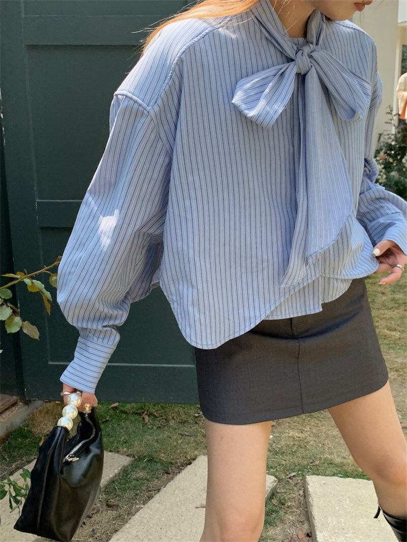 2023夏INS新作★韓国風 気質 シンプル 長袖 リボン シャツ/ブラウス
