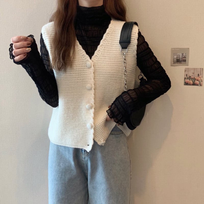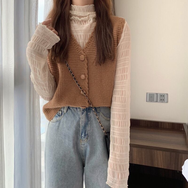 秋冬ニット レディース ベスト トップス オフィスカジュアル ゆったり プルオーバーニット