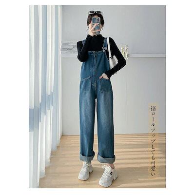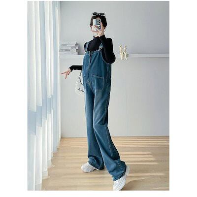 オーバーオール デニム サロペット レディース ポケット ブルー 大きいサイズ オールインワン マタニティ サロペットパンツ ロング つなぎ ゆったり