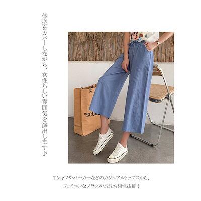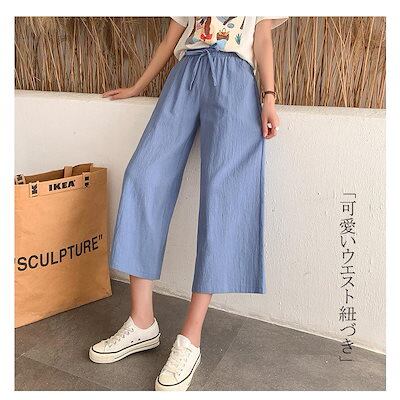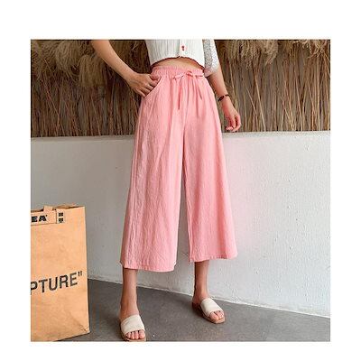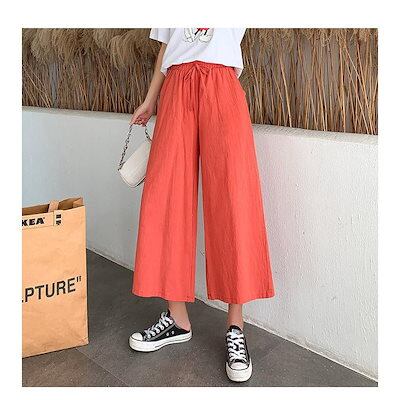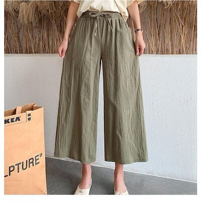 パンツ ワイドパンツ 夏 レディース ウエストゴム カラーパンツ ボトムス 無地 リネン混 リラックス 涼しい カジュアル 体型カバー ゆったり 大きいサイズ