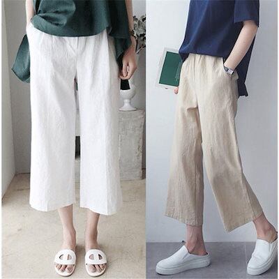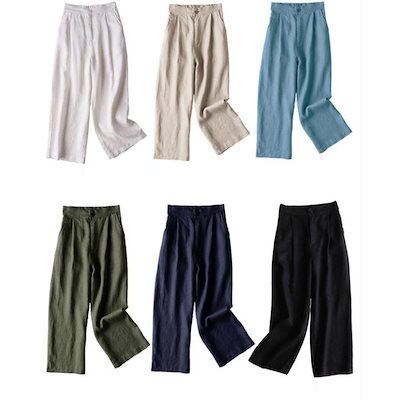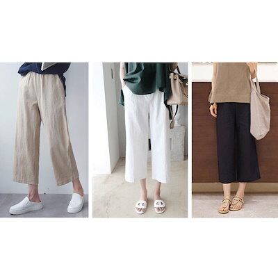 ワイドパンツ ガウチョパンツ スカンツ スカーチョ パンツ ズボン レディース ハイウエスト ポケット付き 綿麻 無地 ゆったり きれめ 春 夏 30代 40代 50代