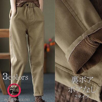 テーパードパンツ パンツ レディース ボトムス 綿 コットン 裏起毛 体型カバー 大きいサイズ ウエストゴム 楽ちん おしゃれ ゆったり