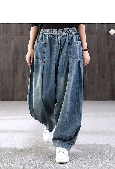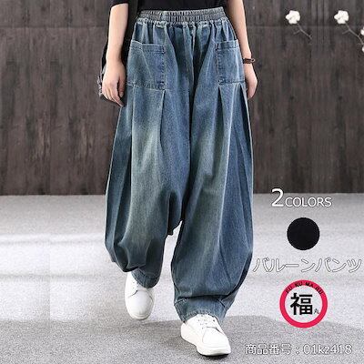 デニムパンツ ロング丈 バルーン サルエルパンツ パンツ レディース デニム バルーンパンツ ウェストゴム ゆったり ハレムパンツ カジュアル 着痩せ