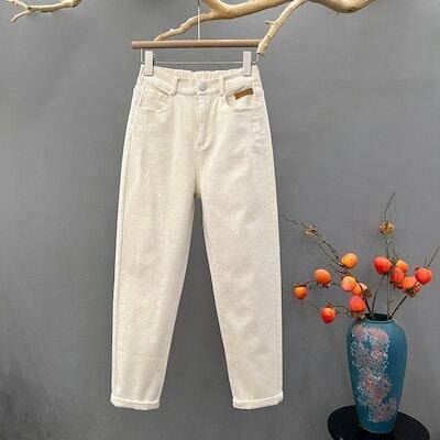 オフホワイト 春秋 カジュアル レディース 高級な質感 新作 使いやすい ストレッチウエスト ハイウエスト ゆったり スリミング ハーレム ダッドパンツ