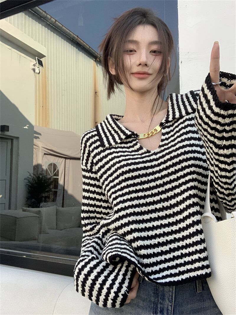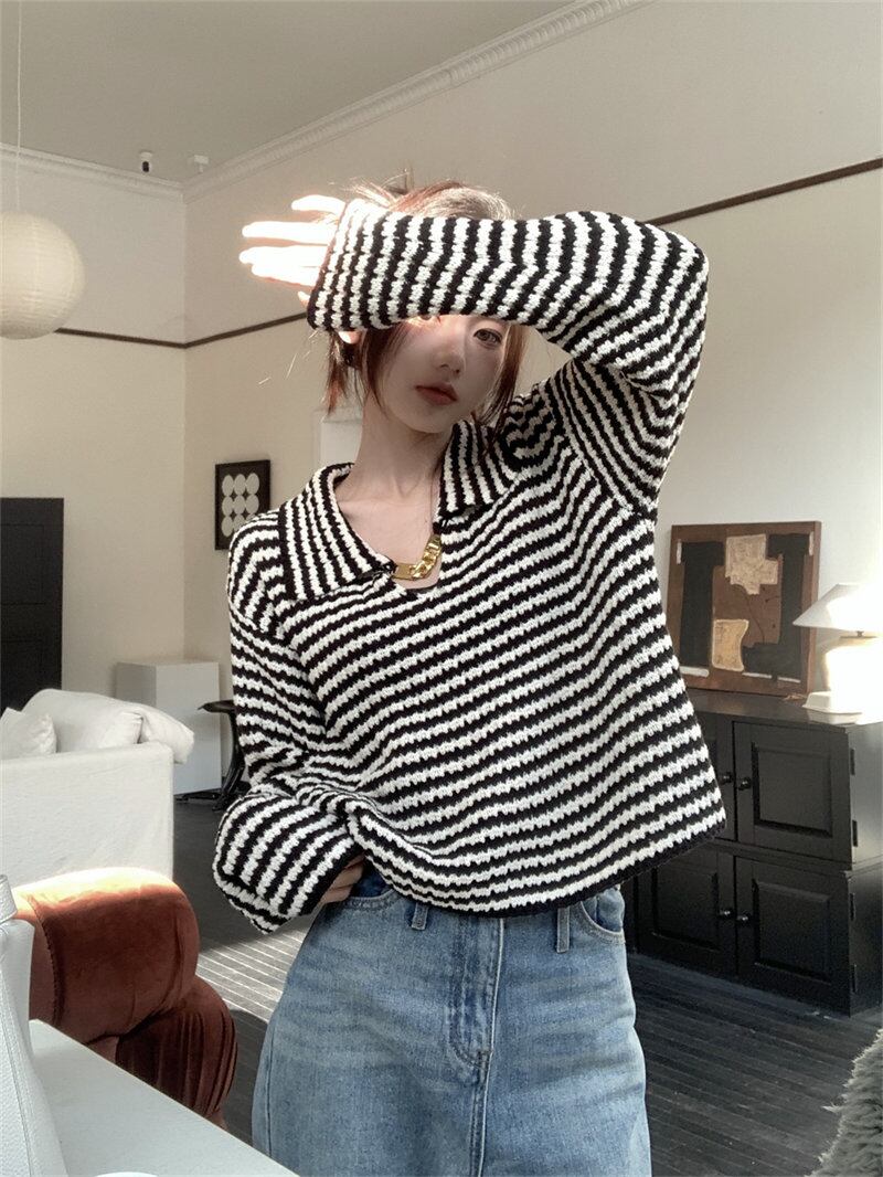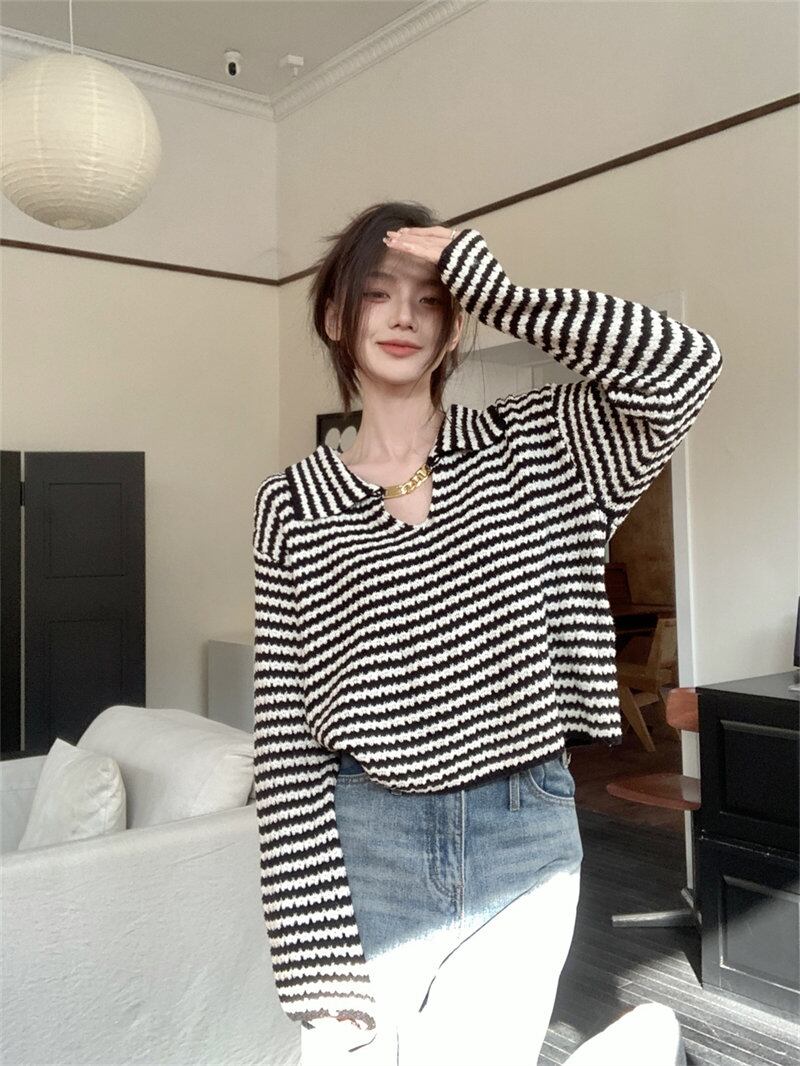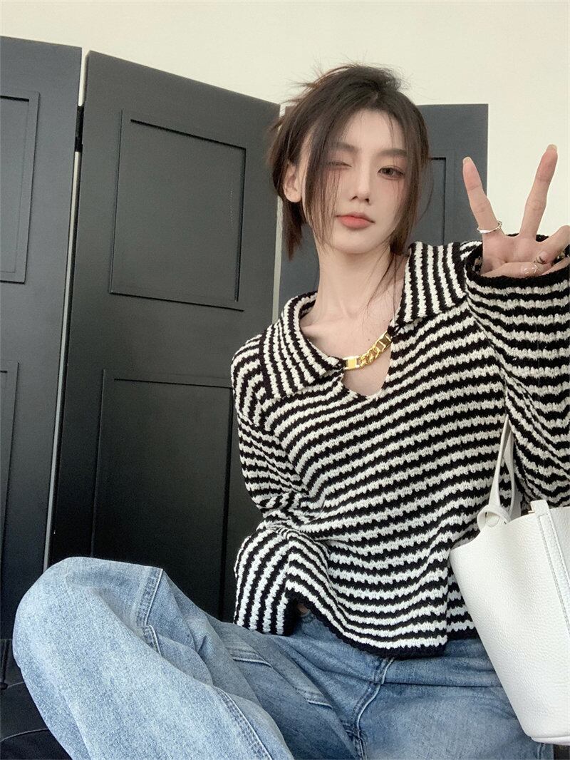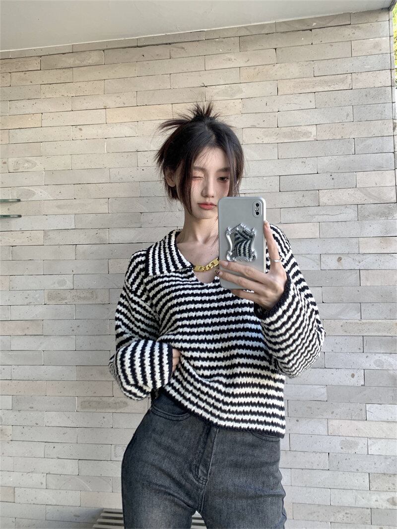 2023秋INS新作★韓国風 気質 ファッション ストライプ柄 ニット セーター
