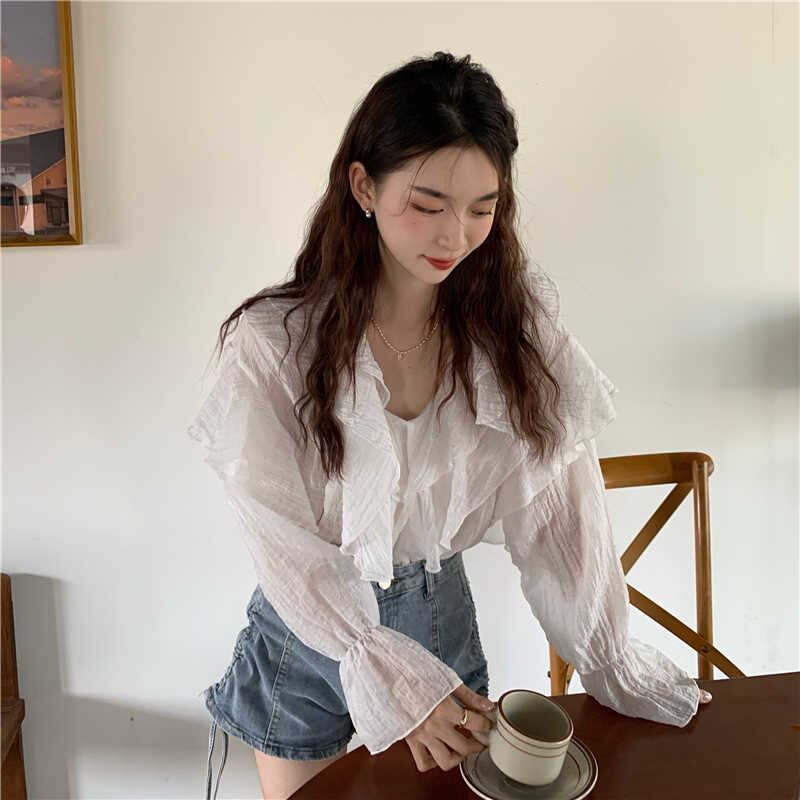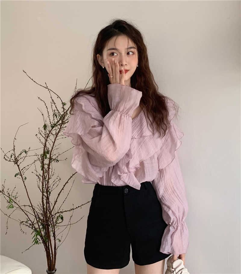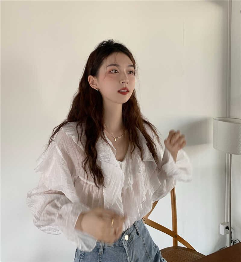 2023秋INS新作★カジュアル 韓国風 気質 フリル Vネック デザイン性 エレガント 着心地抜群 ブラウス