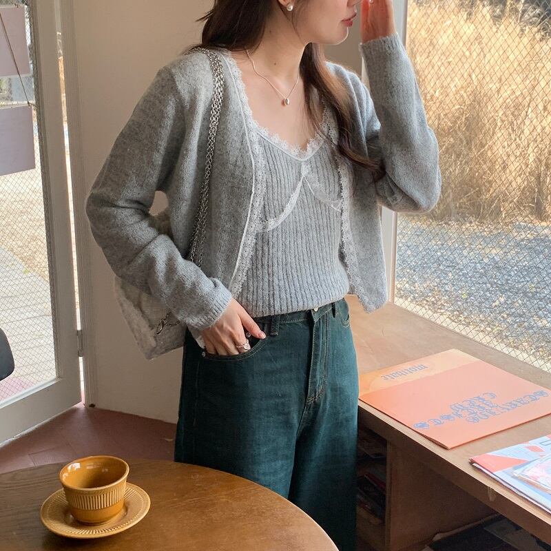 2023秋INS新作★カジュアル 韓国風 気質 デザイン性 エレガント 着心地抜群 カーディガン+キャミソール