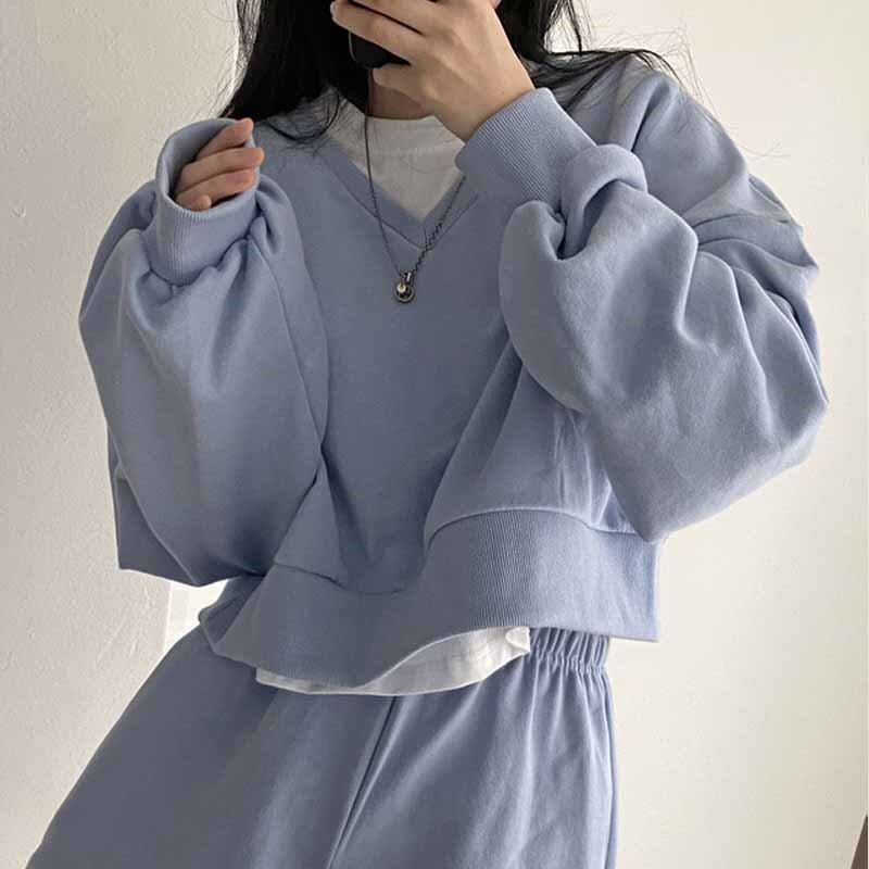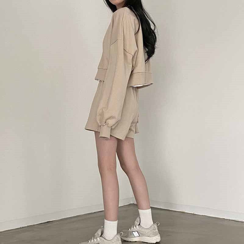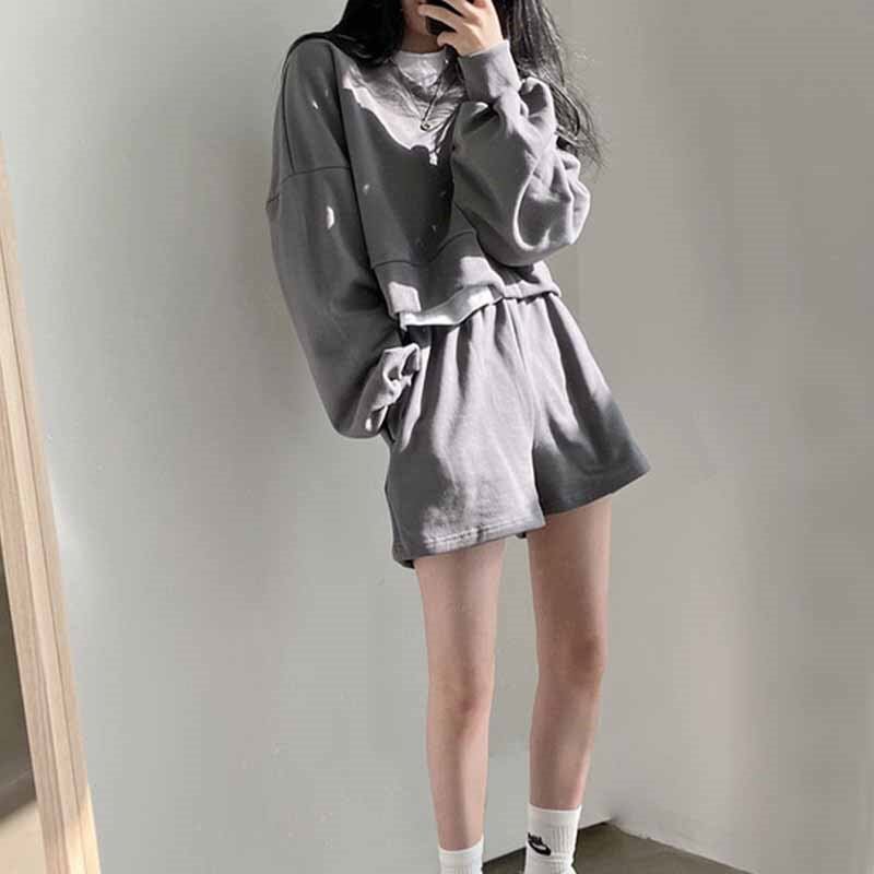 2023夏INS新作★韓国風 気質 カジュアル 長袖 トレーナー+ショートパンツ カジュアルセットアップ