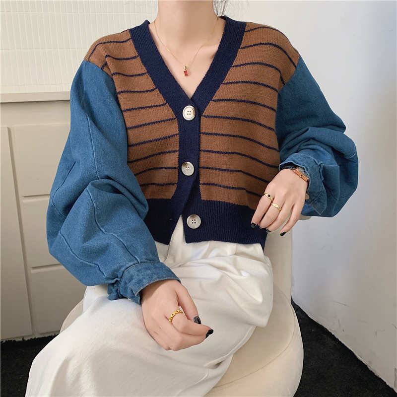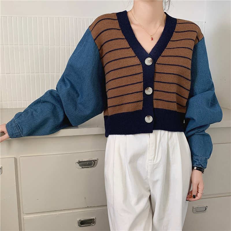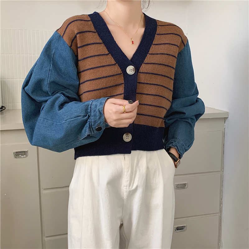 2023秋INS新作★カジュアル 韓国風 気質 ニット デザイン性 フェイクレイヤード ジーンズ ジャケット
