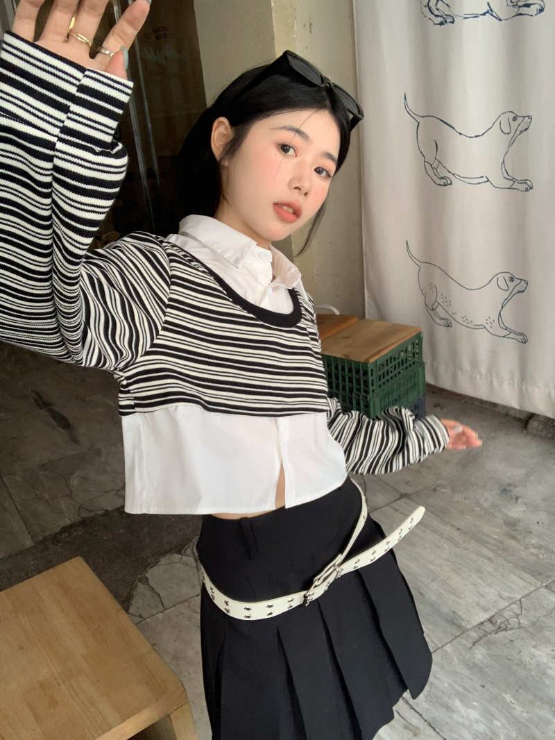 2023秋INS新作★カジュアル 韓国風 気質 着心地抜群 ストライプ柄 フェイクレイヤード ポロシャツ