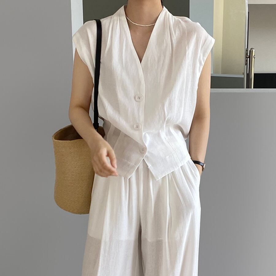 u27873 レディース セット スラックス エレガント 2色 韓国風 ベスト パンツ ズボン