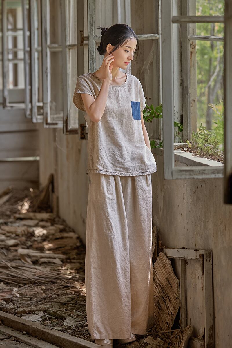 u28622トップス レディース ズボン パンツ ボトムス 無地 亜麻 カジュアル 2025夏新作