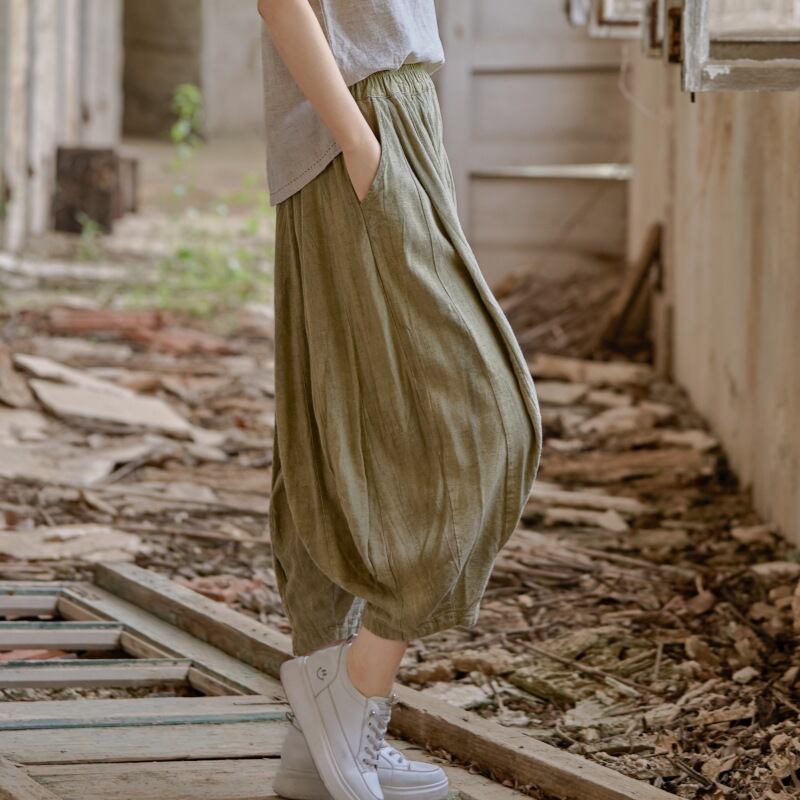 u28625トップス レディース ズボン パンツ ボトムス 無地 亜麻 カジュアル 2025夏新作