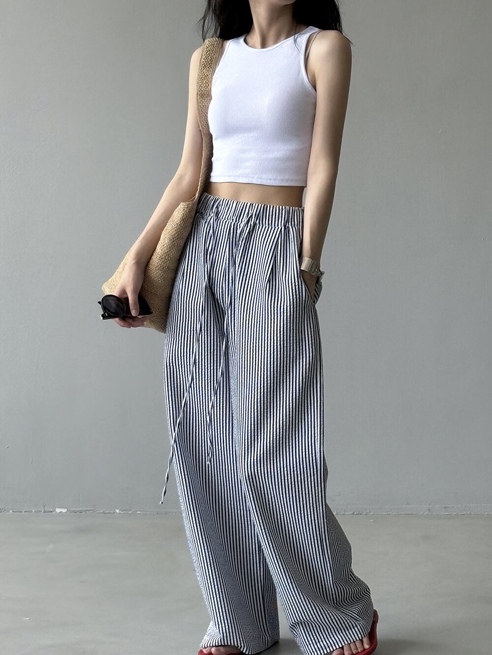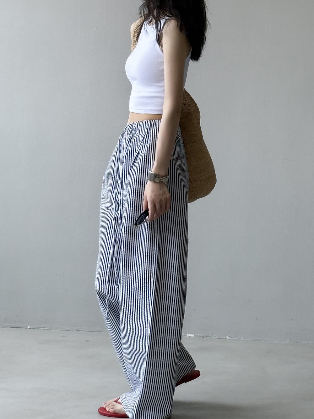 u28152レディース ボトムス パンツ ズボン カジュアル ストライプ 韓国風 2025春夏新作