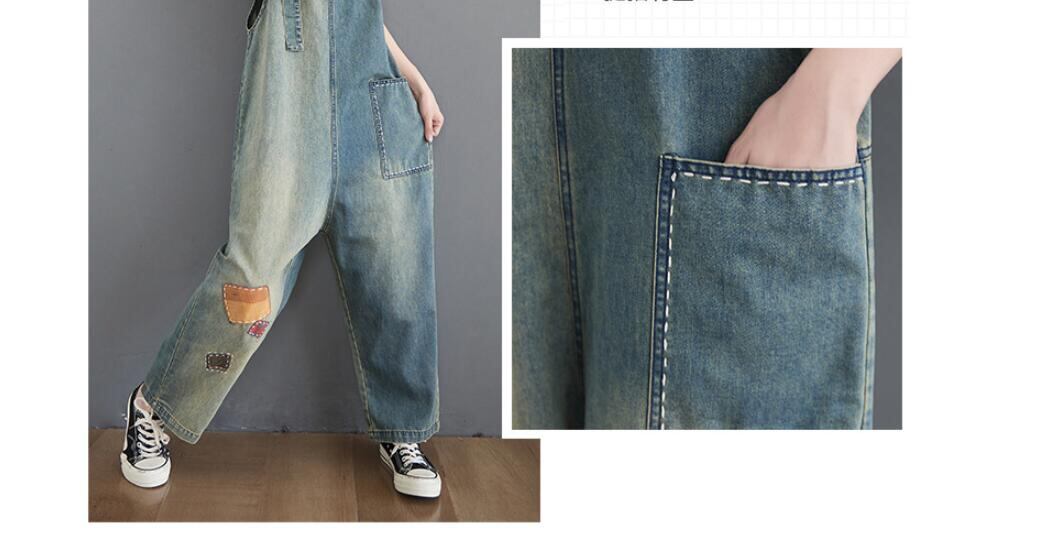 2021年の新しい秋のファッションパーソナリティカジュアルジーンズ韓国のよだれかけパンツ