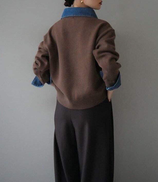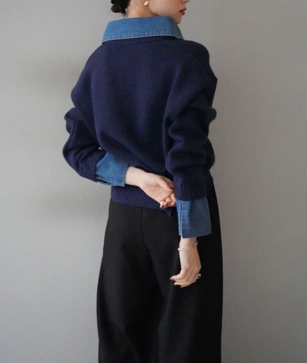 2025年INS 秋冬新作 気質 おしゃれ レイヤードツーピース風 デニム ルーズニットセーター