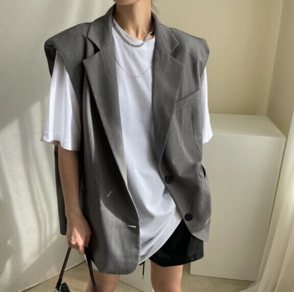 夏 トップス アウター ベスト ノースリーブ カジュアル OL通勤風