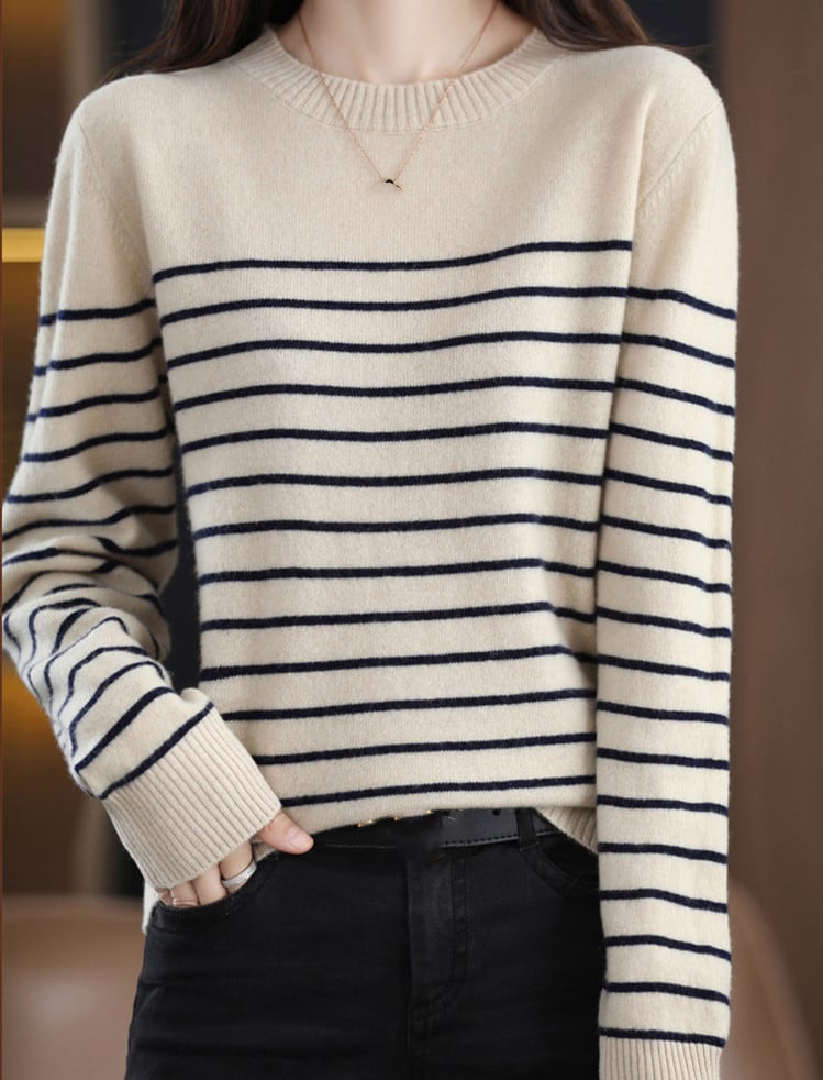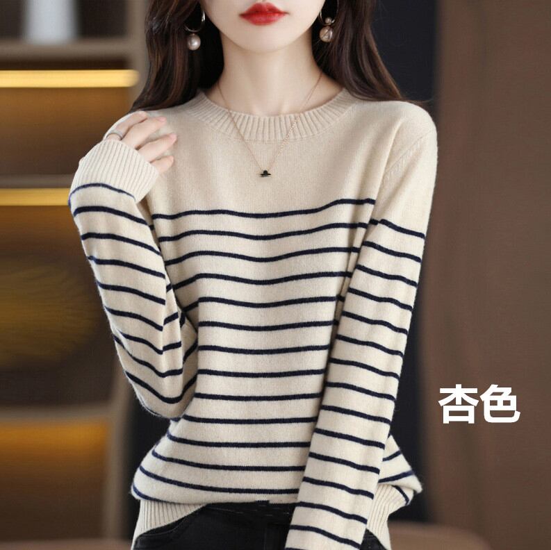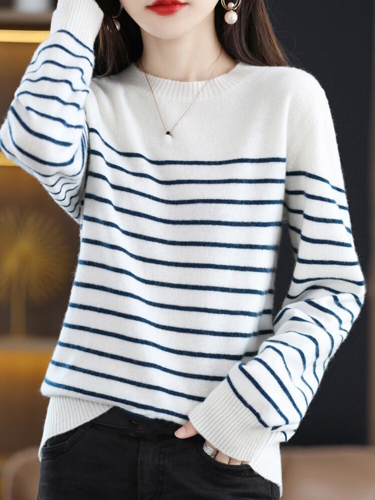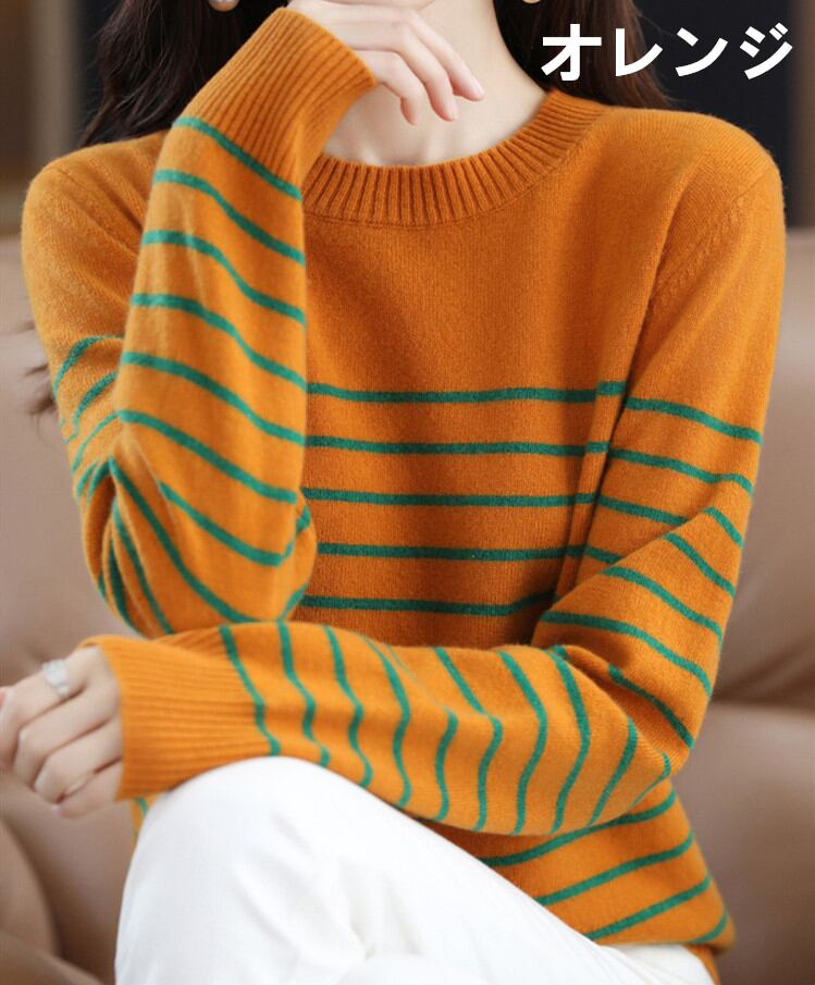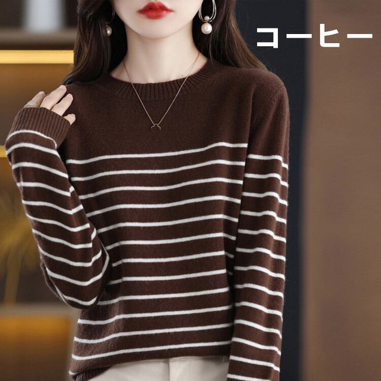ニットセーター tシャツ ボーダー柄 長袖tシャツ 秋冬 ラウンドネック 細ボーダー カジュアル 細見え