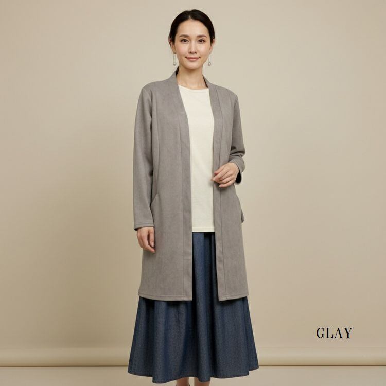 【春物新作】柔らか カットスウェード・ダブルフェイス素材 ロングカーディガン