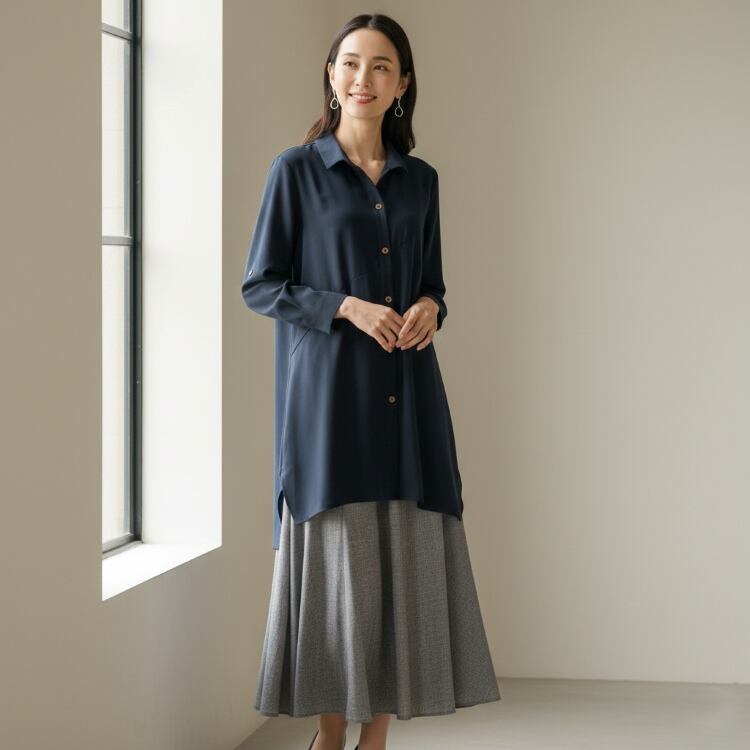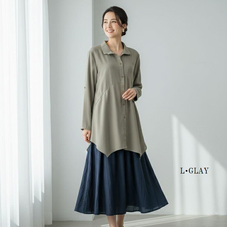 アシンメトリーシルエット ロールアップ仕様 切替チュニックシャツ