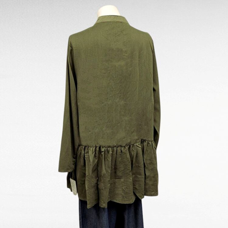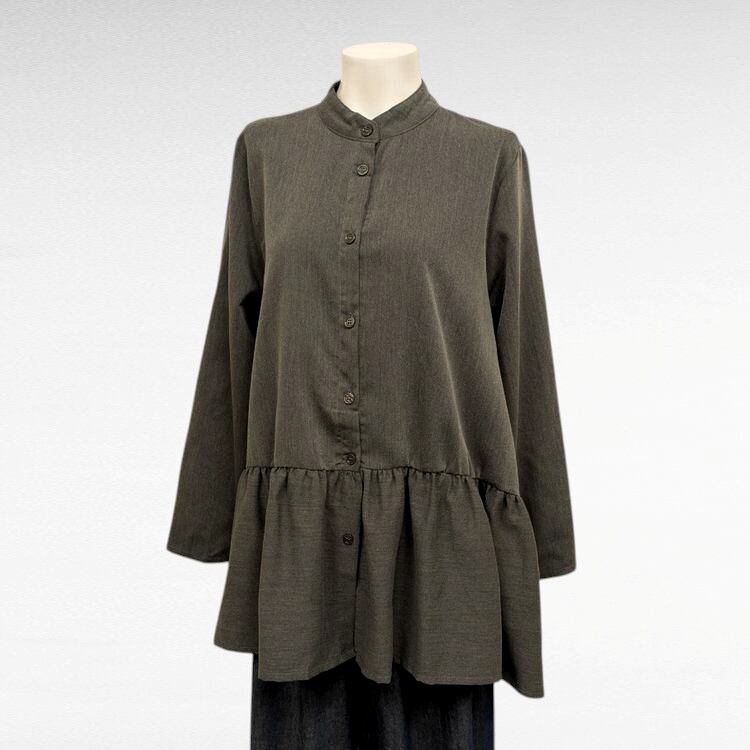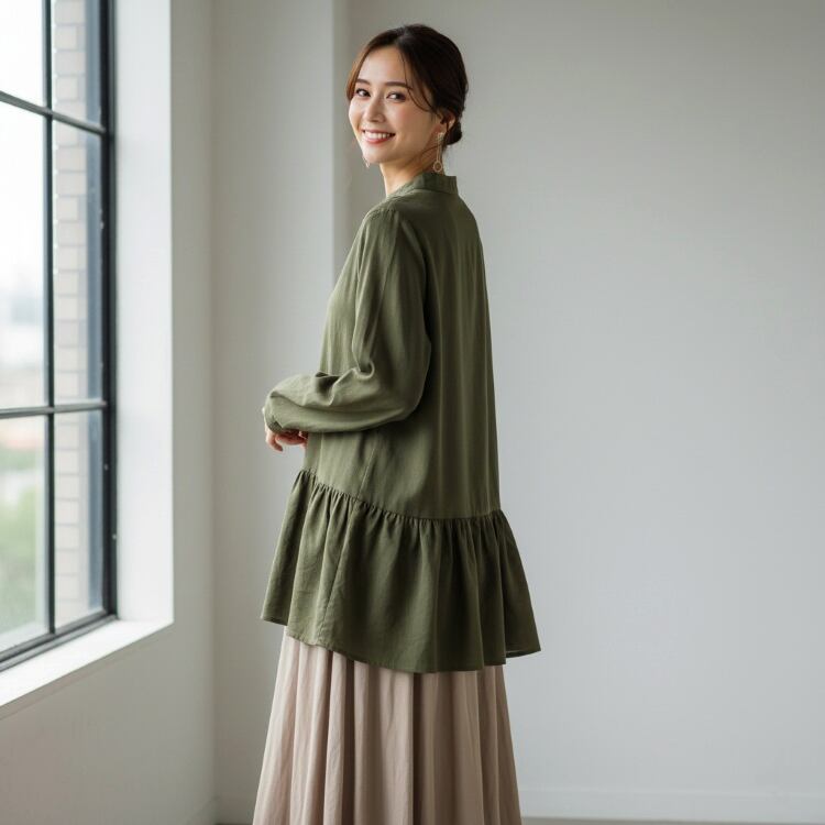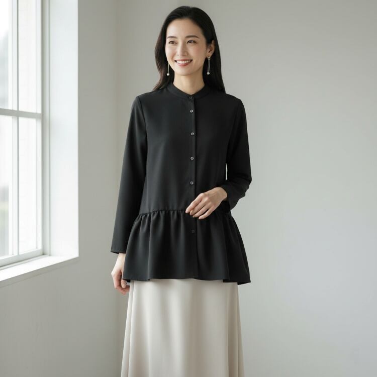裾切り替え ペプラムデザイン ノーカラーブラウス