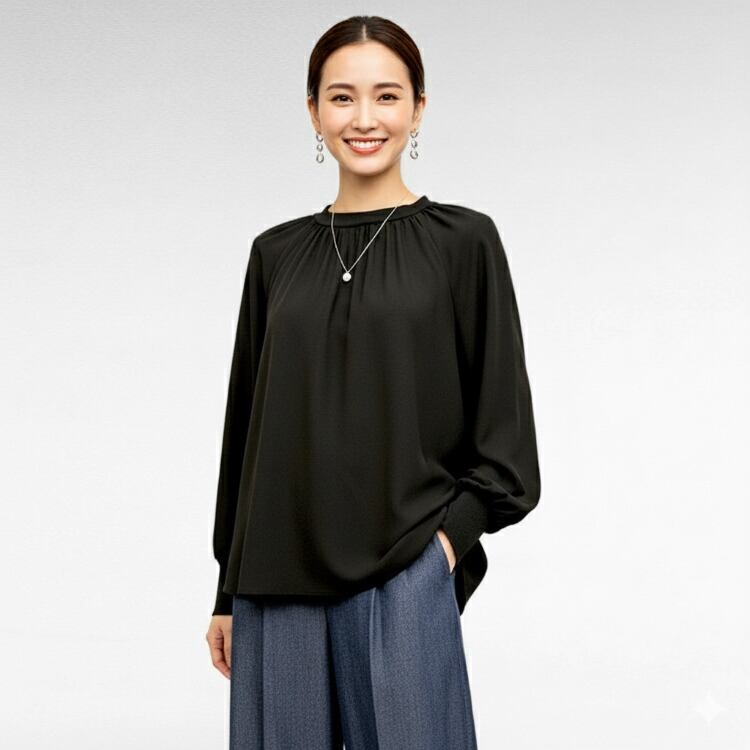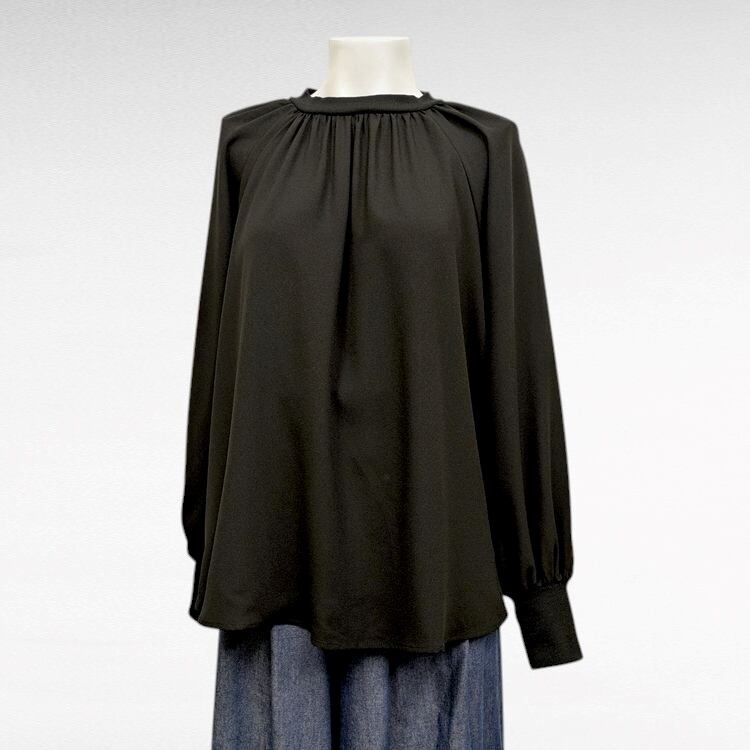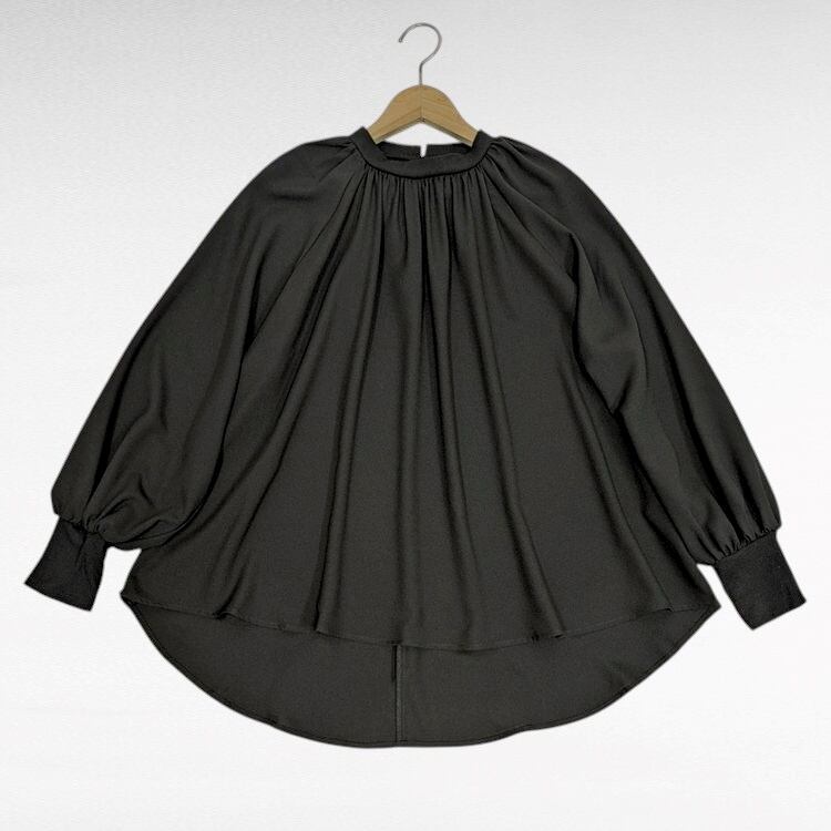 美シルエット ギャザーブラウス ラグランバルーンスリーブ