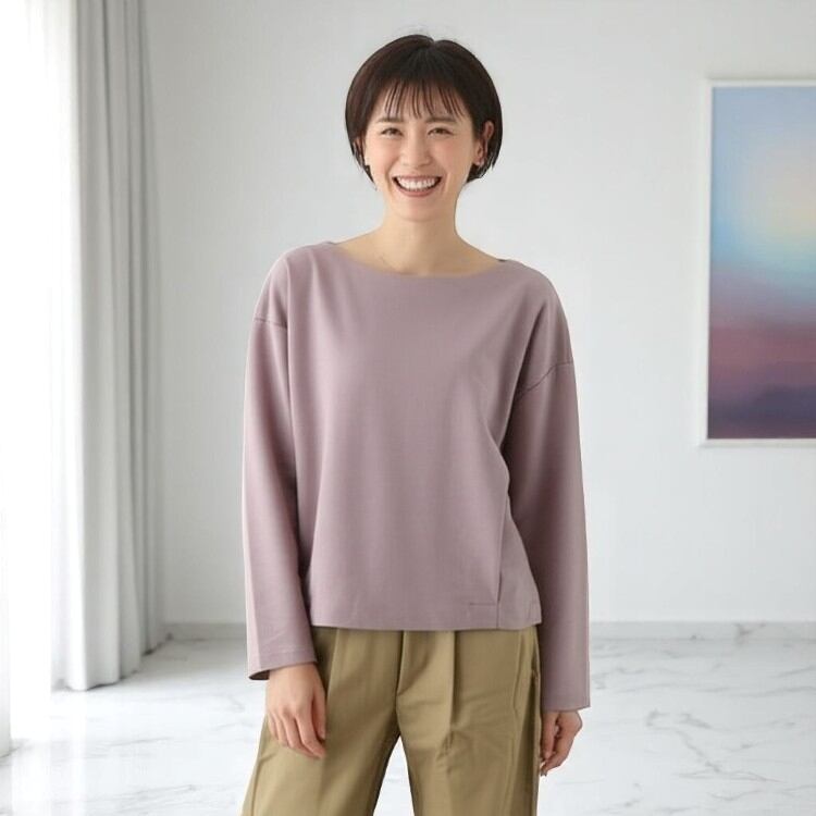 裾サイドタック入り コクーンシルエット 長袖プルオーバー