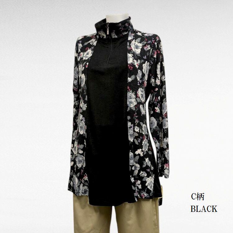 ゆったりAライン ハーフジップ長袖シャツ 強撚ストレッチカットソー C、D柄