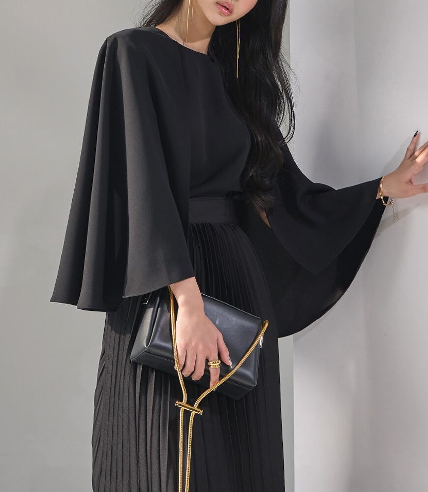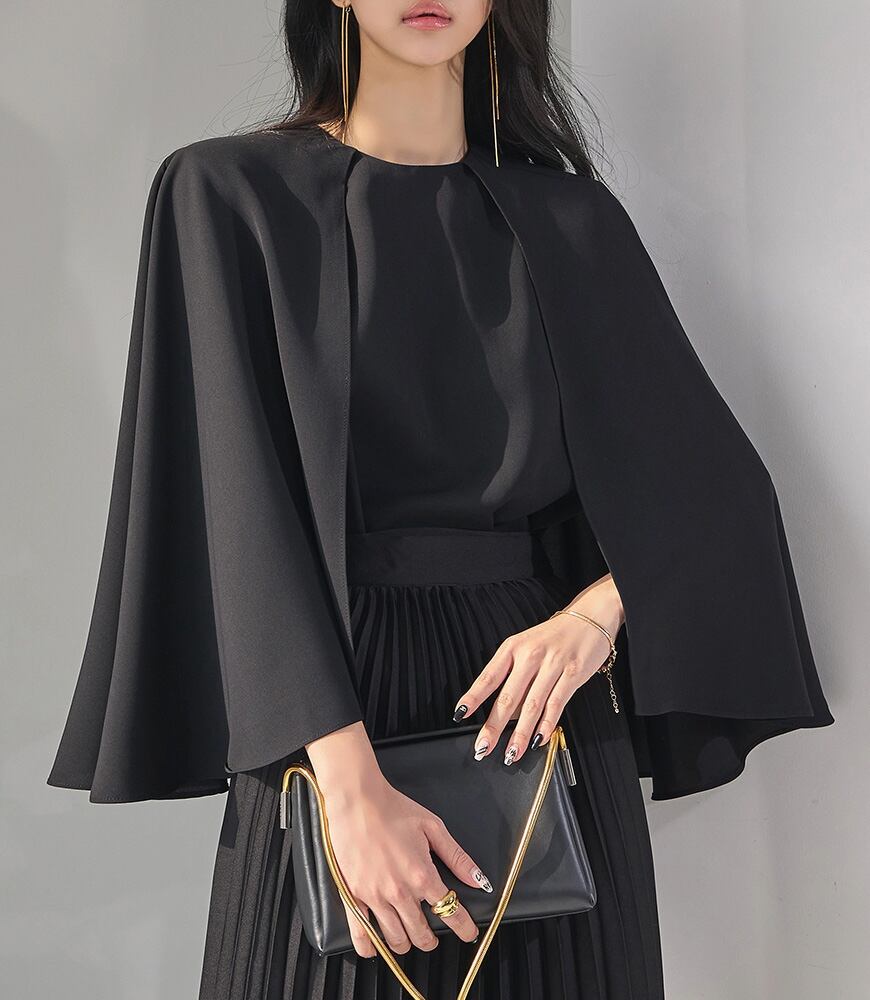 【2026新作】 ケープ ポンチョ ブラウス レイヤード風 切替