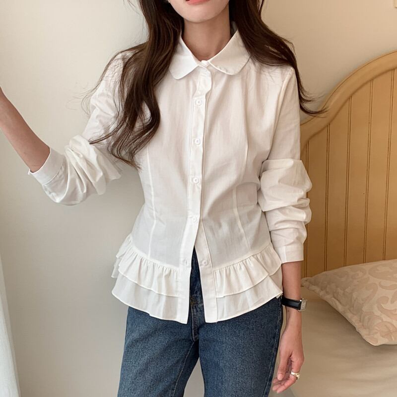 今季マストバイ 気質 おしゃれ フリル ハイブリッド ワンボタン トップス