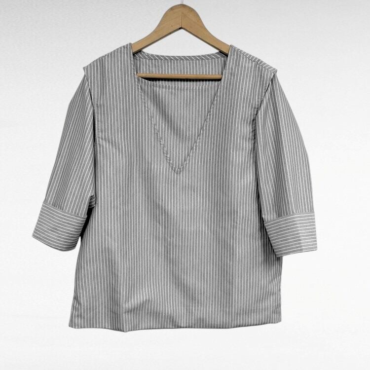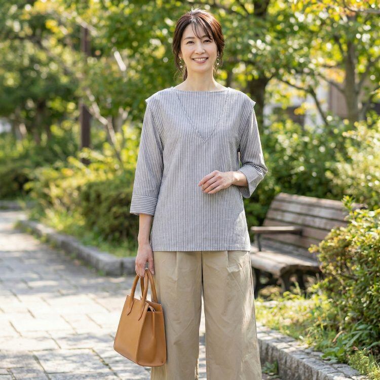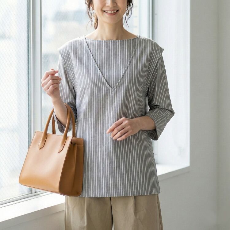 肌触りサラリ 麻混フェイクレイヤード プルオーバー
