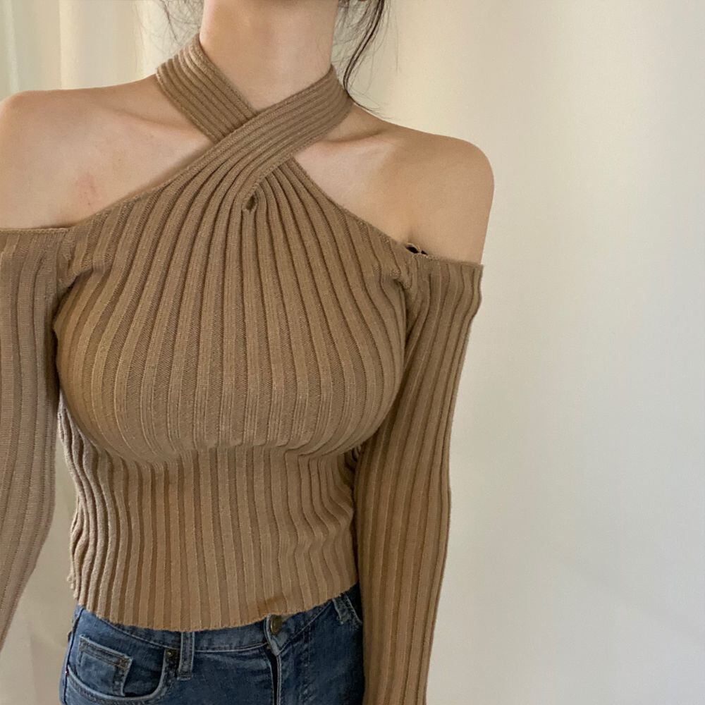 今季マストバイ 気質 おしゃれ ハンガーネック ニット スリム トップス