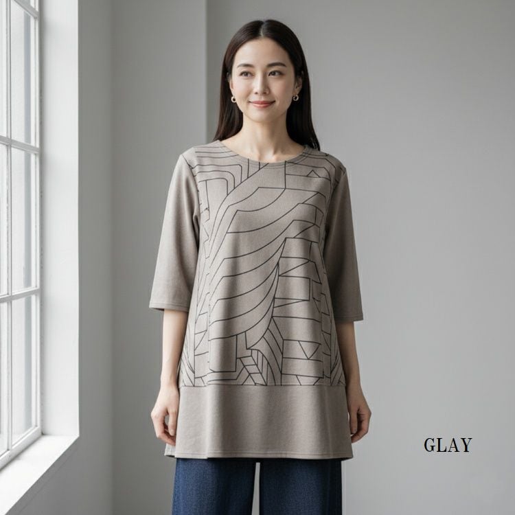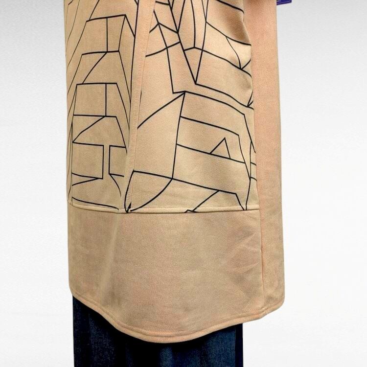 【春物新作】柔らか カットスウェード素材 無地&幾何学柄切り替えプルオーバー