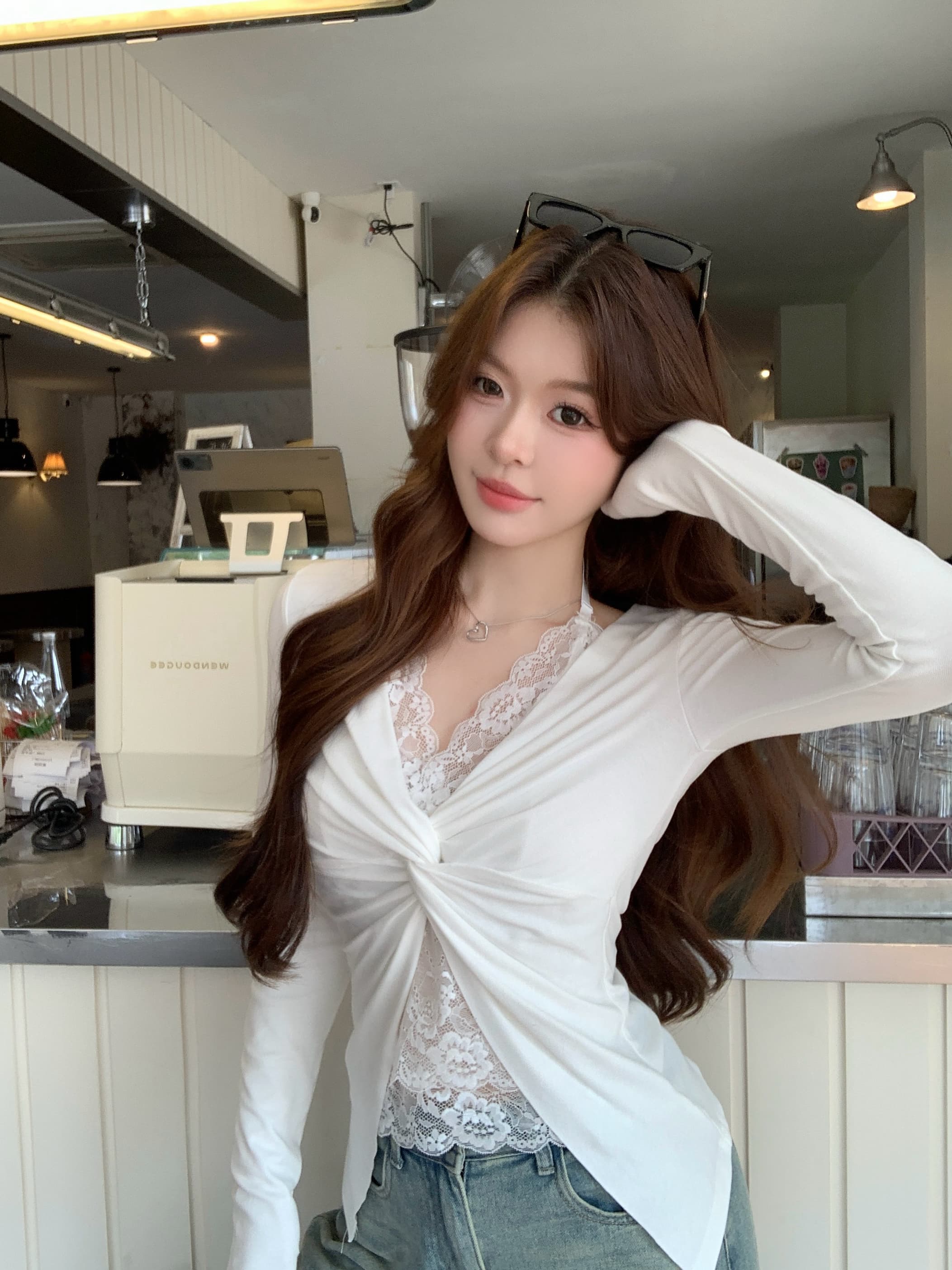 今季マストバイ 気質 おしゃれ フェイクツーピース シャツ レース トップス
