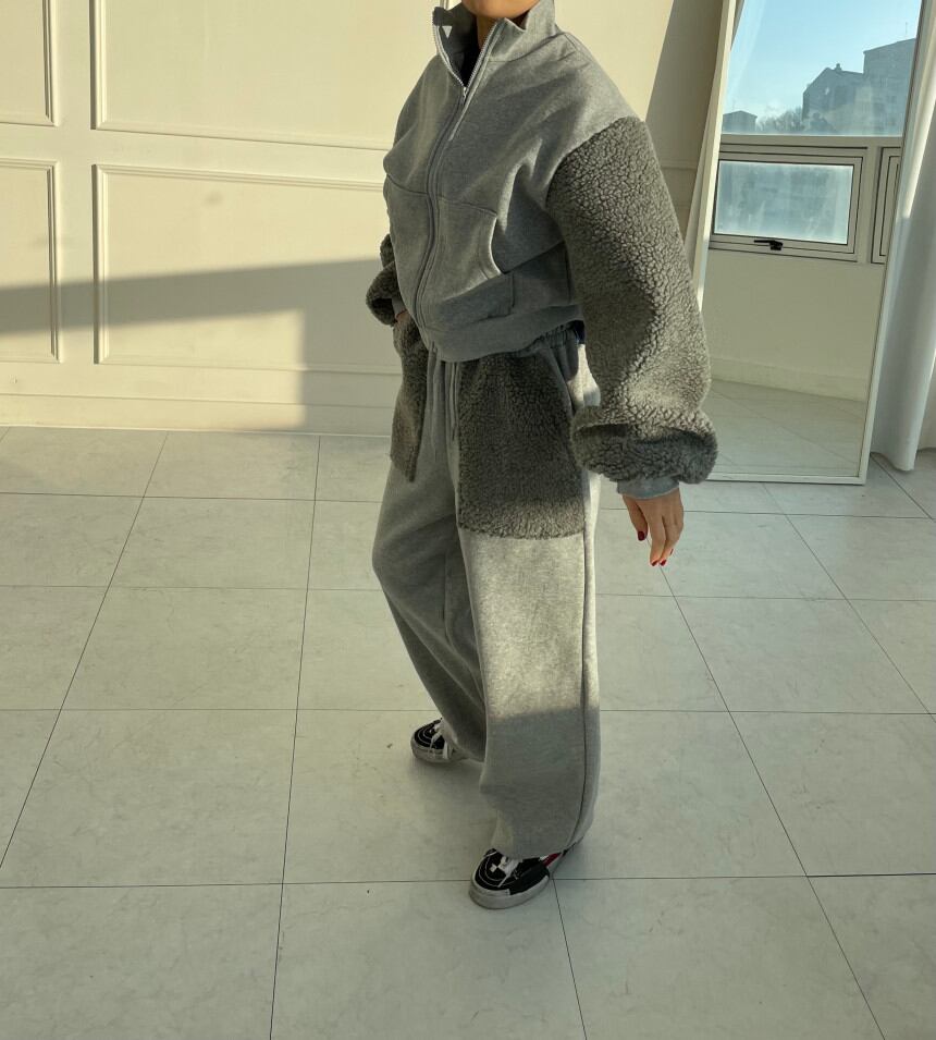 今季マストバイ 気質 おしゃれ シープウール パッチワーク スウェット ジャケット