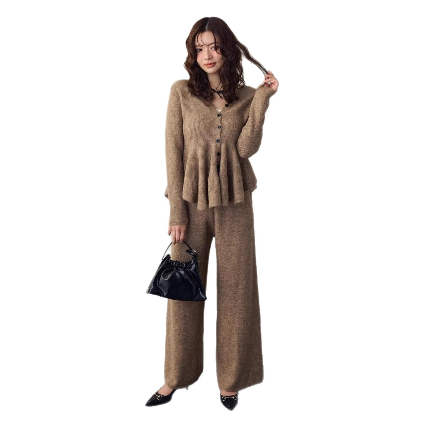 2026 新作 春 人気商品 V ネック フリル ニットトップス+ロングパンツ 2 点セット ファッション