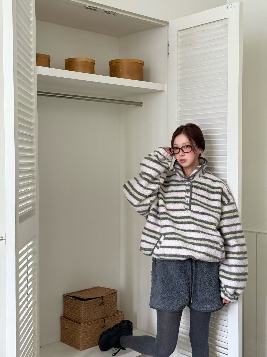 今季マストバイ 気質 おしゃれ ストライプ柄 ハーフジップ ニット セーター