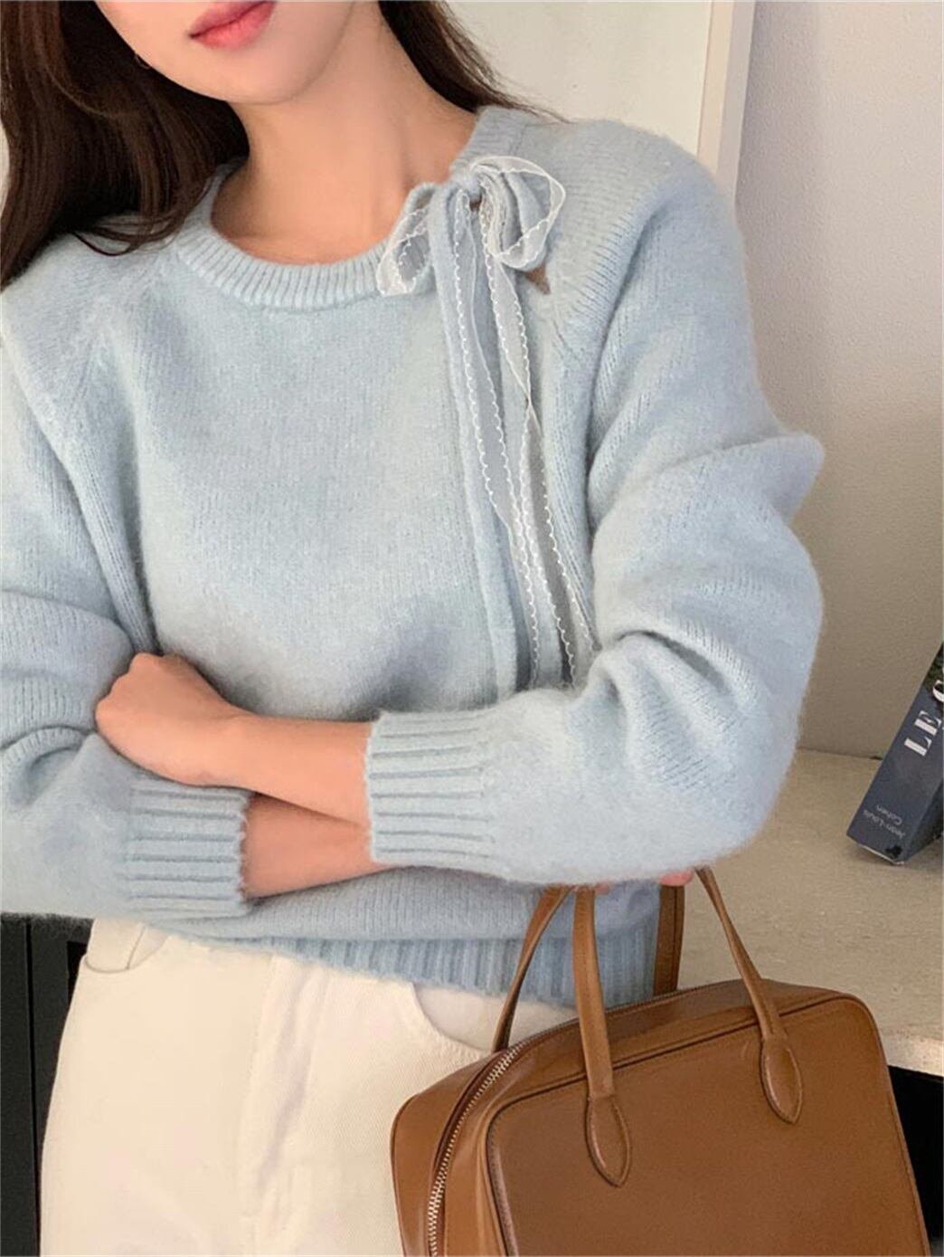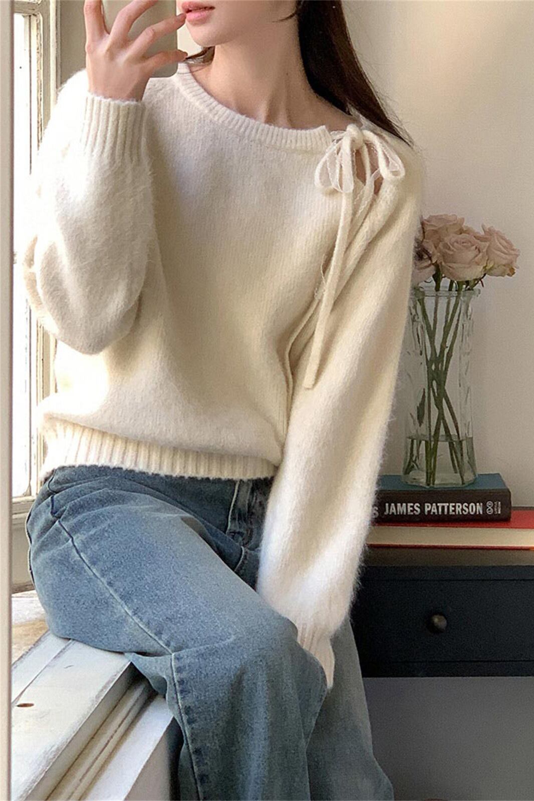 今季マストバイ 気質 おしゃれ クルーネック 厚手 リボン付き ニット セーター