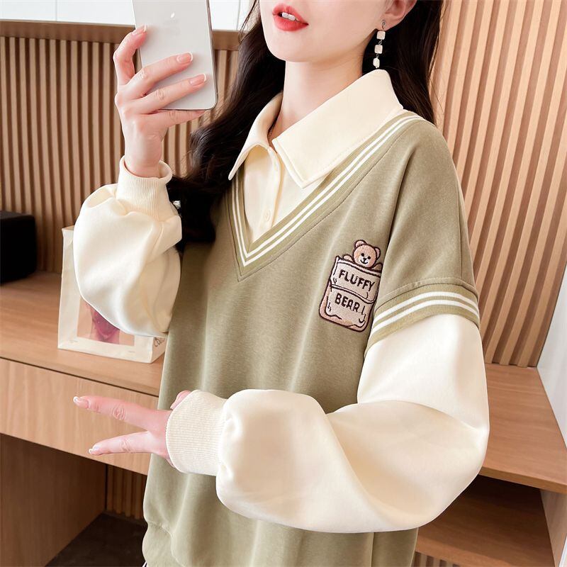 【レイヤード風】2026年 春秋新作 レイヤードデザイン ポロ スウェット レディース ゆったり 小柄