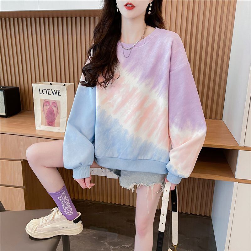 2026年新作 韓国風 春秋 グラデーション レディース スウェット ゆったり 小柄 タイダイ