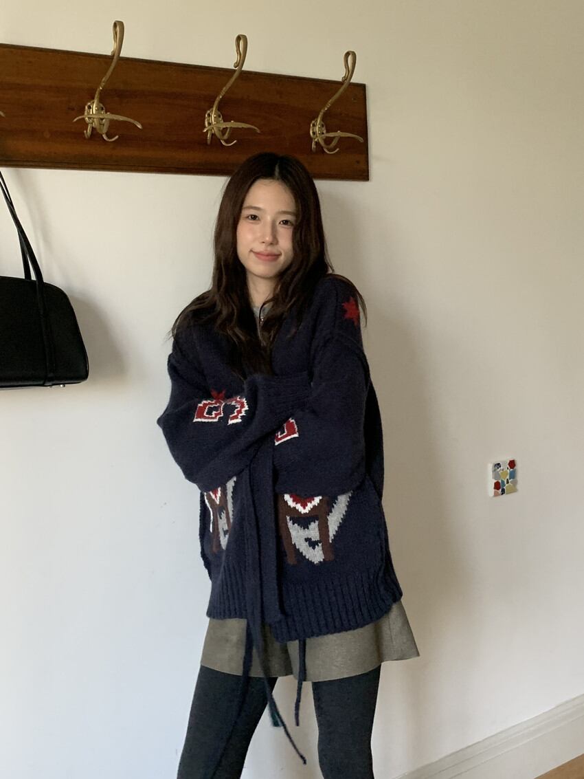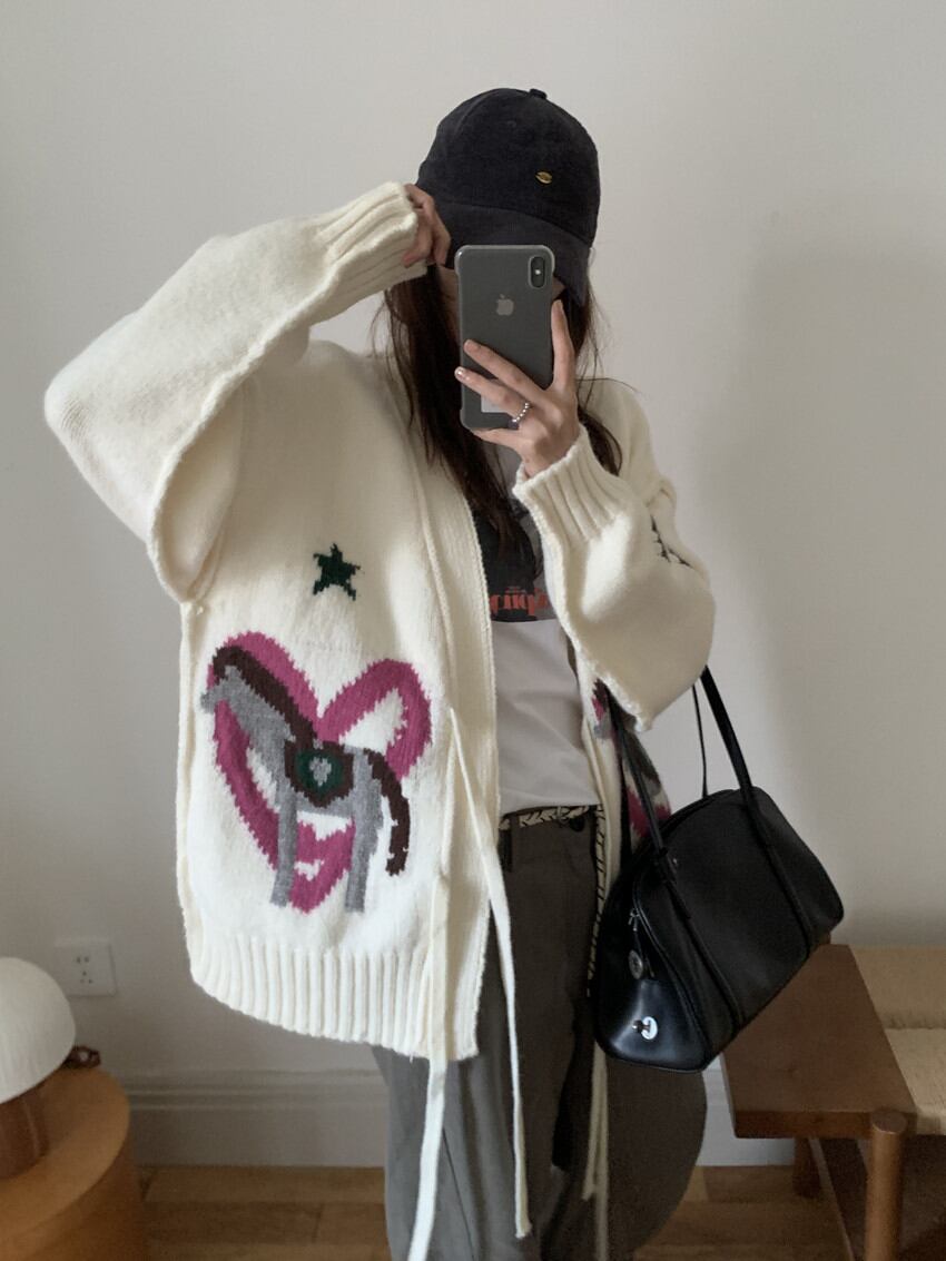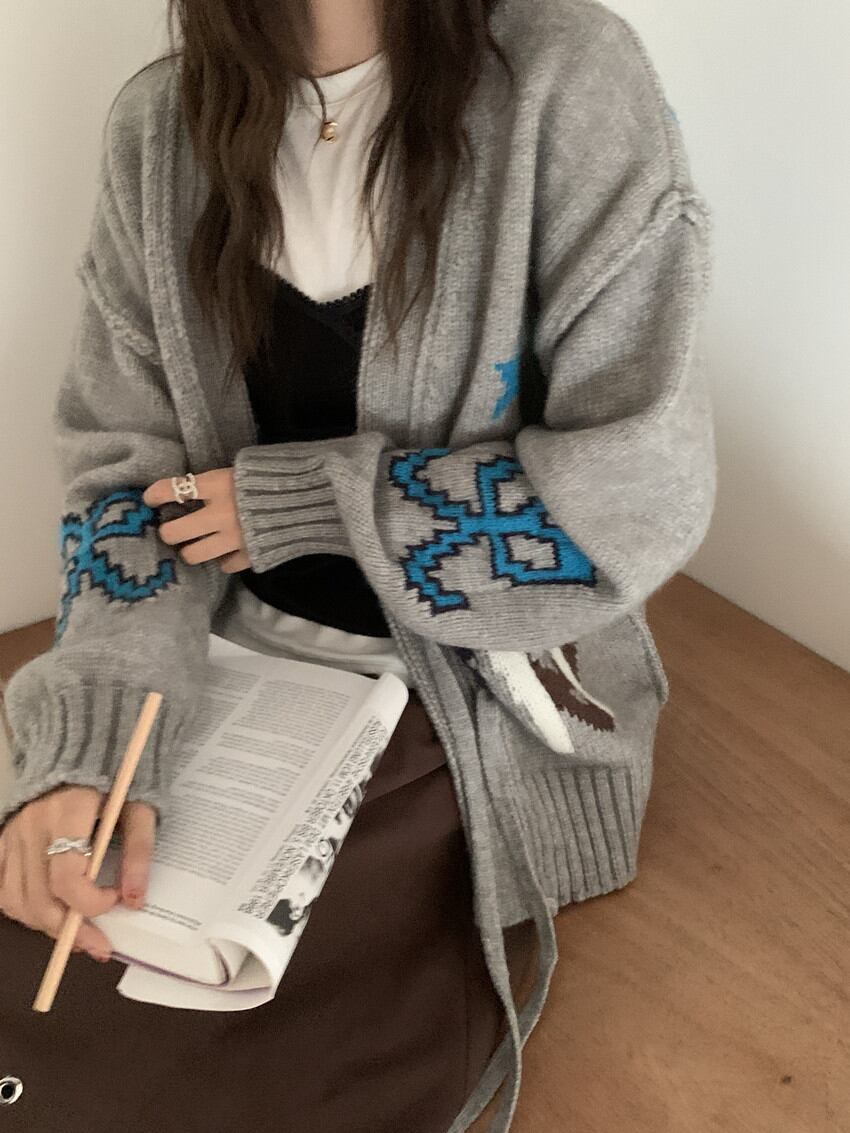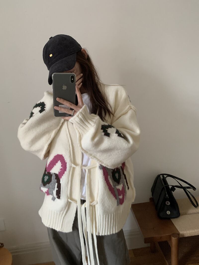 今季マストバイ INS 風 スウィート ニット ジャカード柄 カーディガン